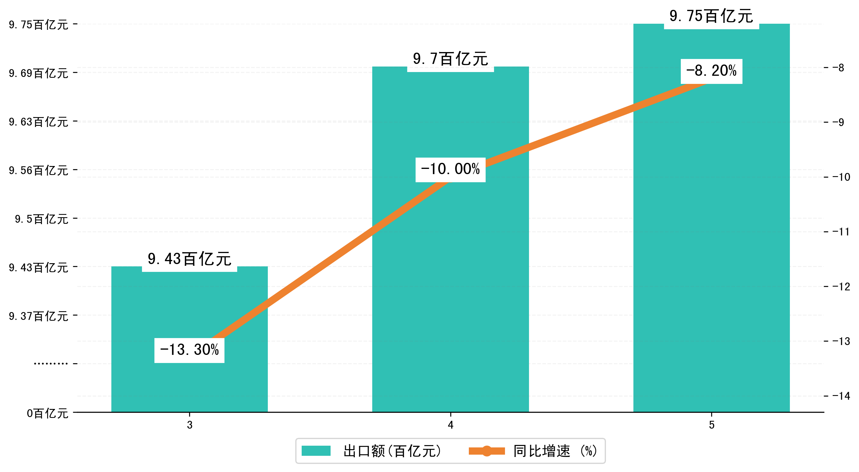 以人民币计,2025年5月福建省出口额为975,4610.6029万元,相比上月增加了5,6763.9744万元;相比上年同期减少了7,7796.3467万元,同比减少了-8.20%。