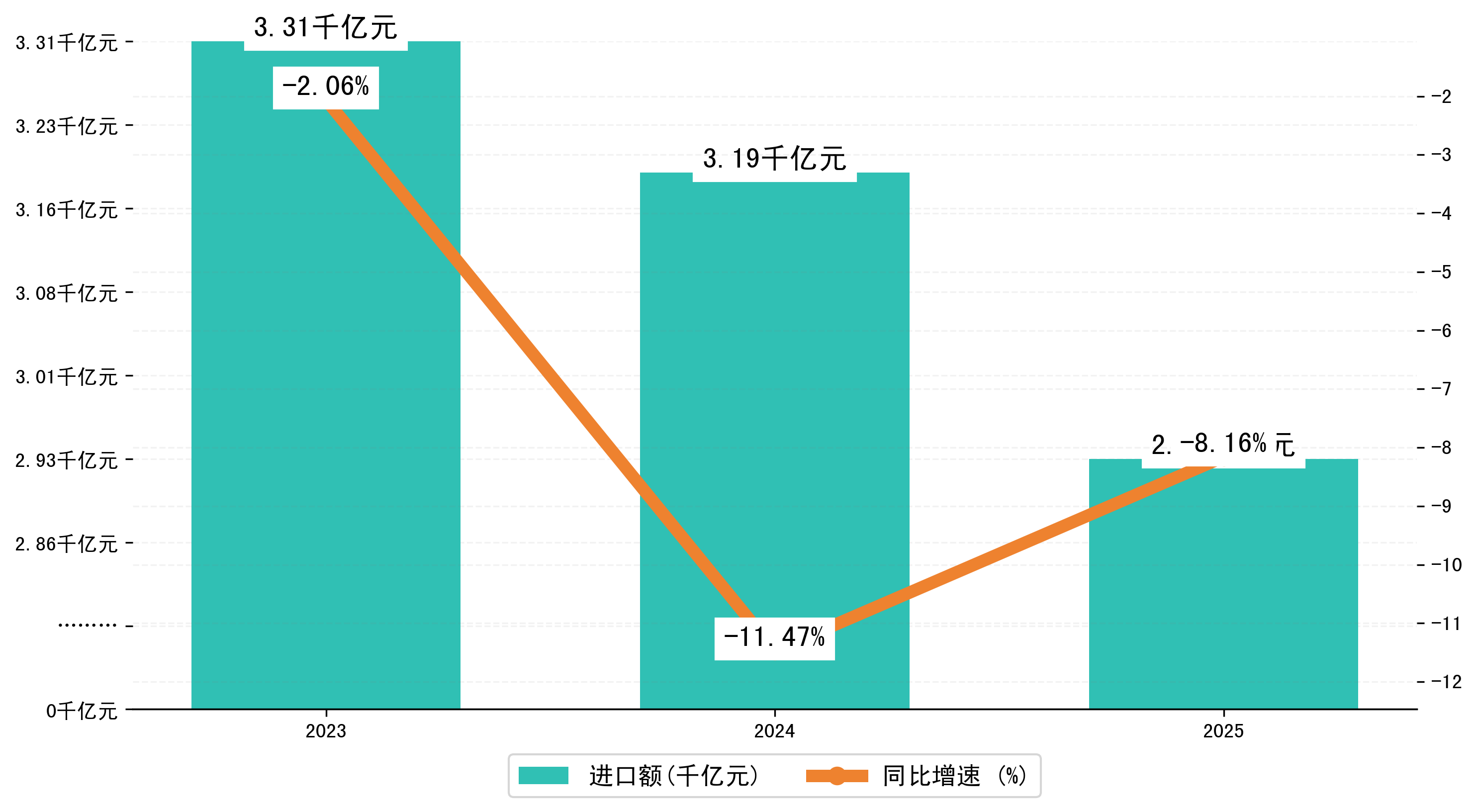 以人民币计,2025年5月福建省进口额为591,9445.8852万元,相比上月减少了9,1113.1059万元;相比上年同期减少了53,3636.7198万元,同比减少了-8.10%。