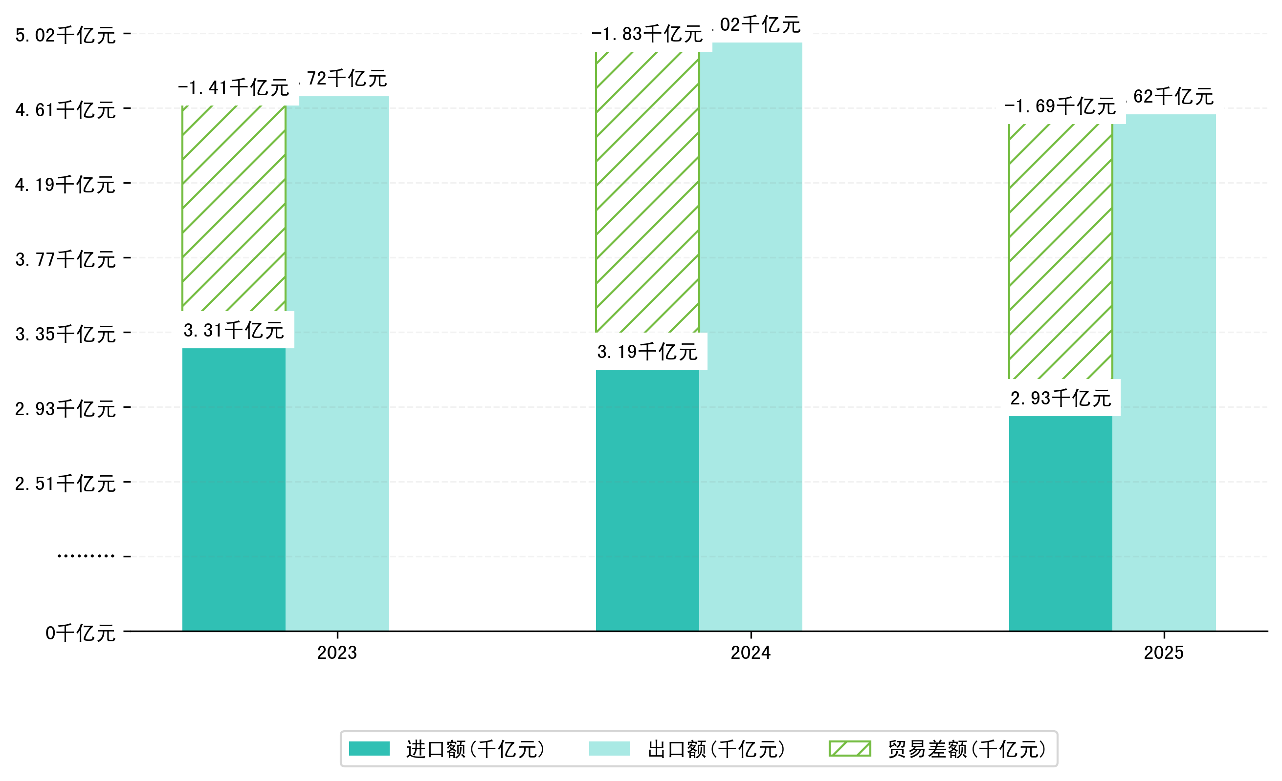 以人民币计,2025年5月福建省贸易差额为383,5164,7177万元(贸易顺差),相比上月增加了14,7877,0803万元,即1,8314,2780万美元;相比上年同期增加了45,5840,3731万元,同比增加13.49%。