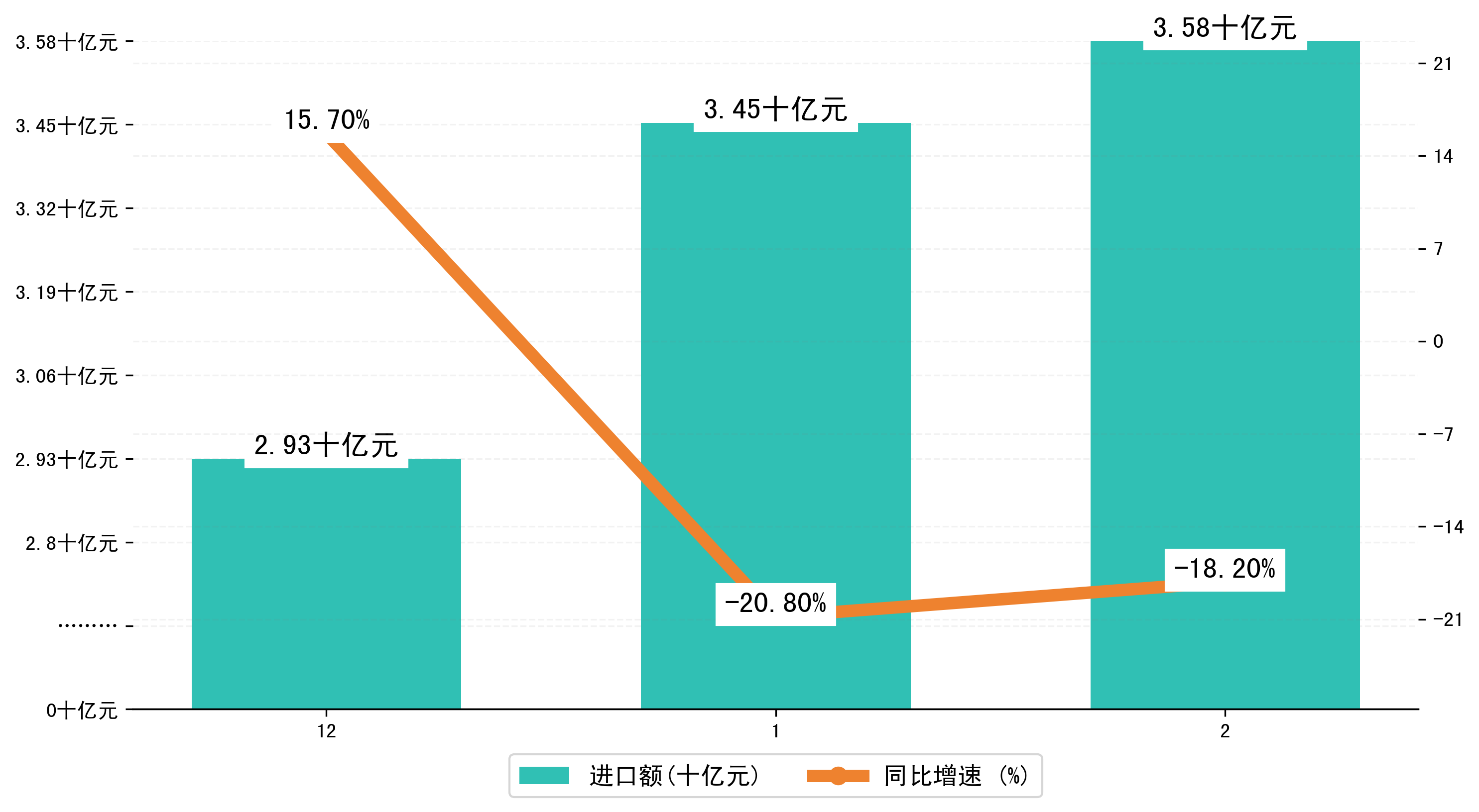 以人民币计,2023年2月甘肃省进口额为35,8094.604万元,相比上月增加了1,2811.5135万元;相比上年同期减少了3,7389.464万元,同比减少了-18.20%。