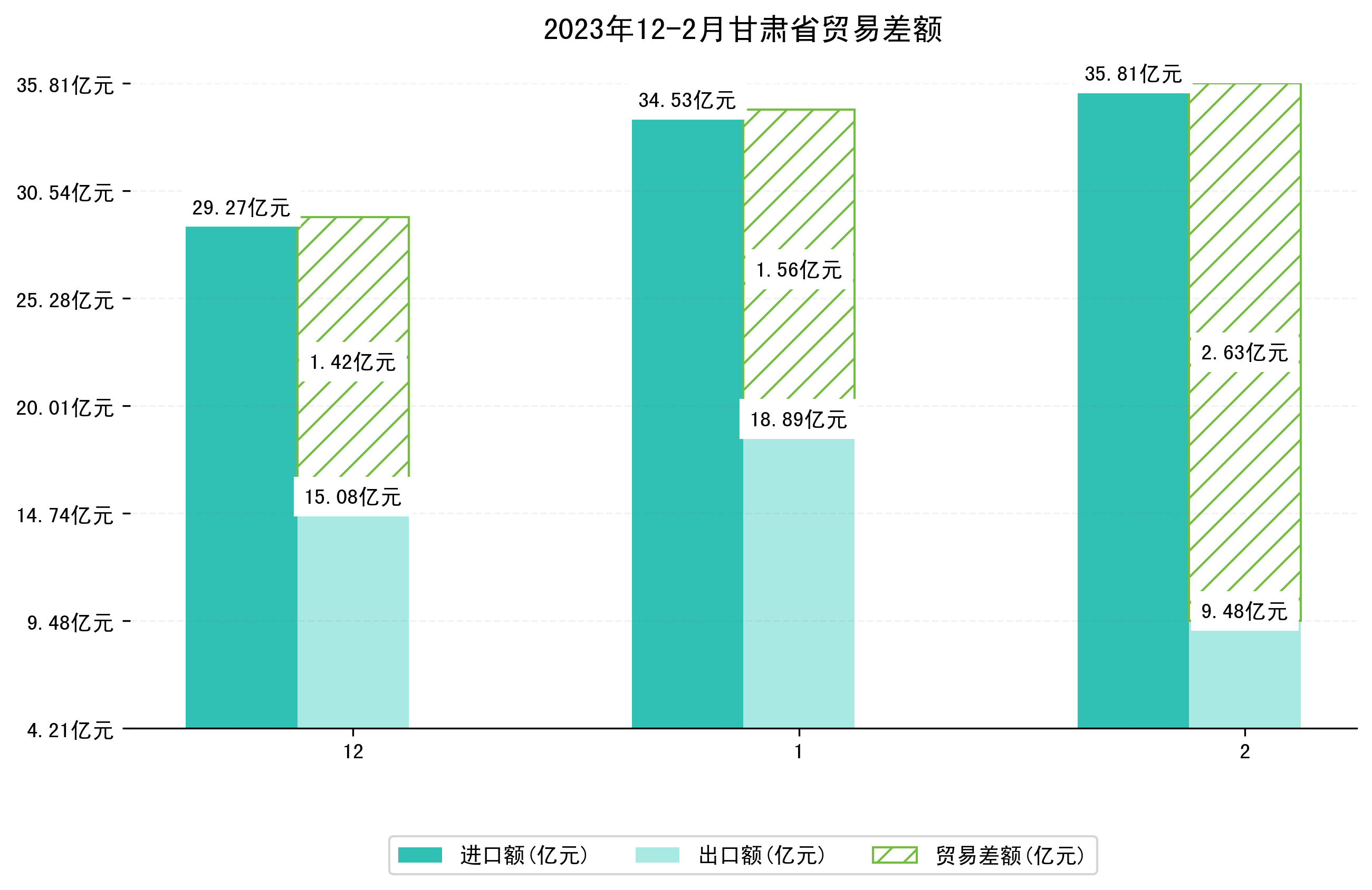 2023年2月甘肃省进出口总额及进出口差额统计分析