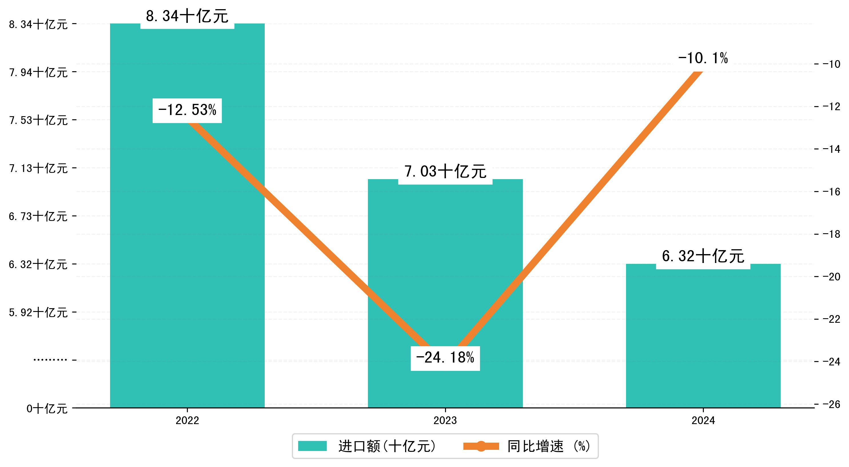 以美元计,2024年1-2月甘肃省进口额为8,8935.6655万美元,相比上年同期减少了1,2411.4892万美元,同比减少-7.30%。