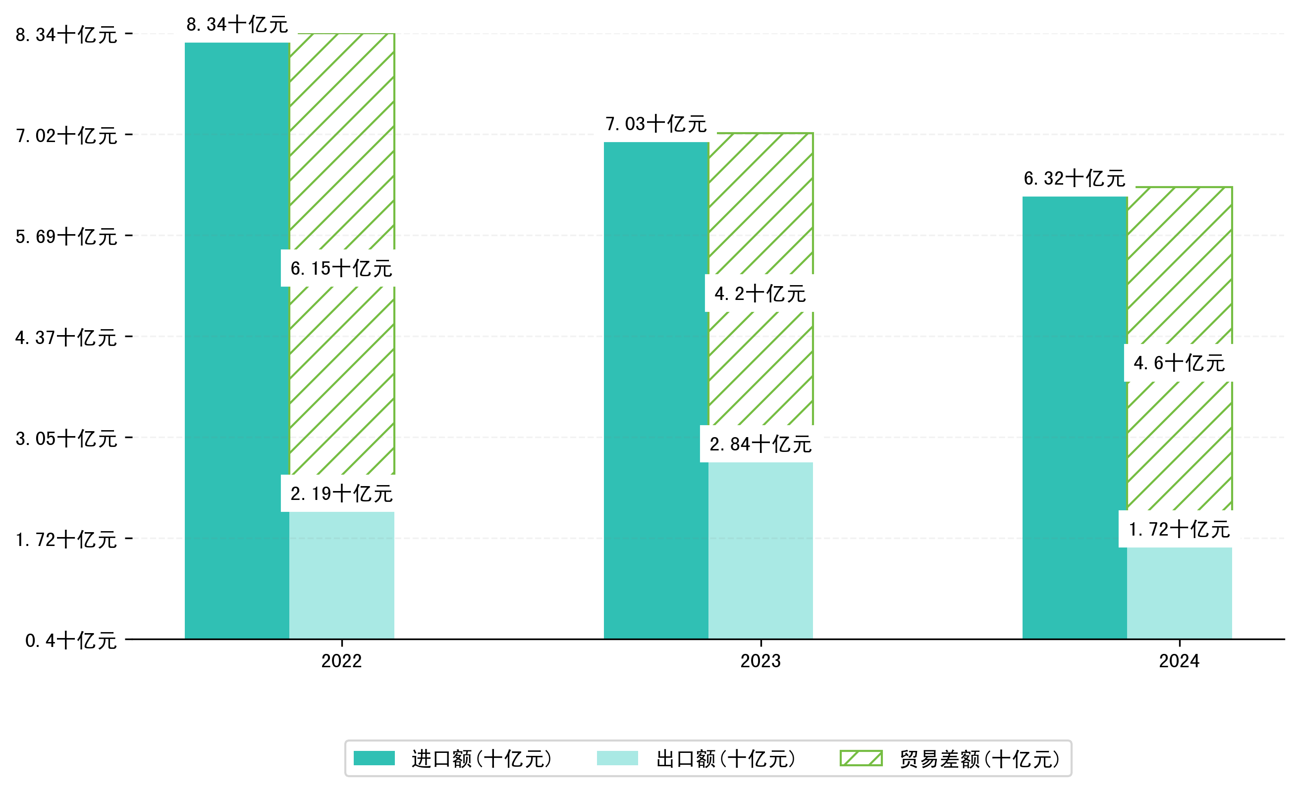 以美元计,2024年1-2月甘肃省贸易差额为6,4675,0226万美元(贸易逆差),相比上年同期减少了4314,9562万美元,同比减少7.15%。