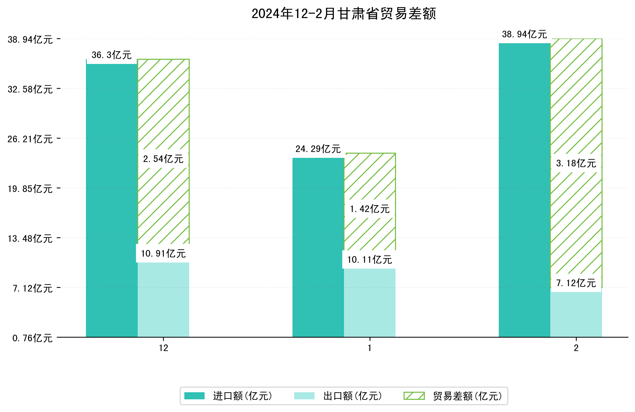 2024年2月甘肃省进出口总额及进出口差额统计分析