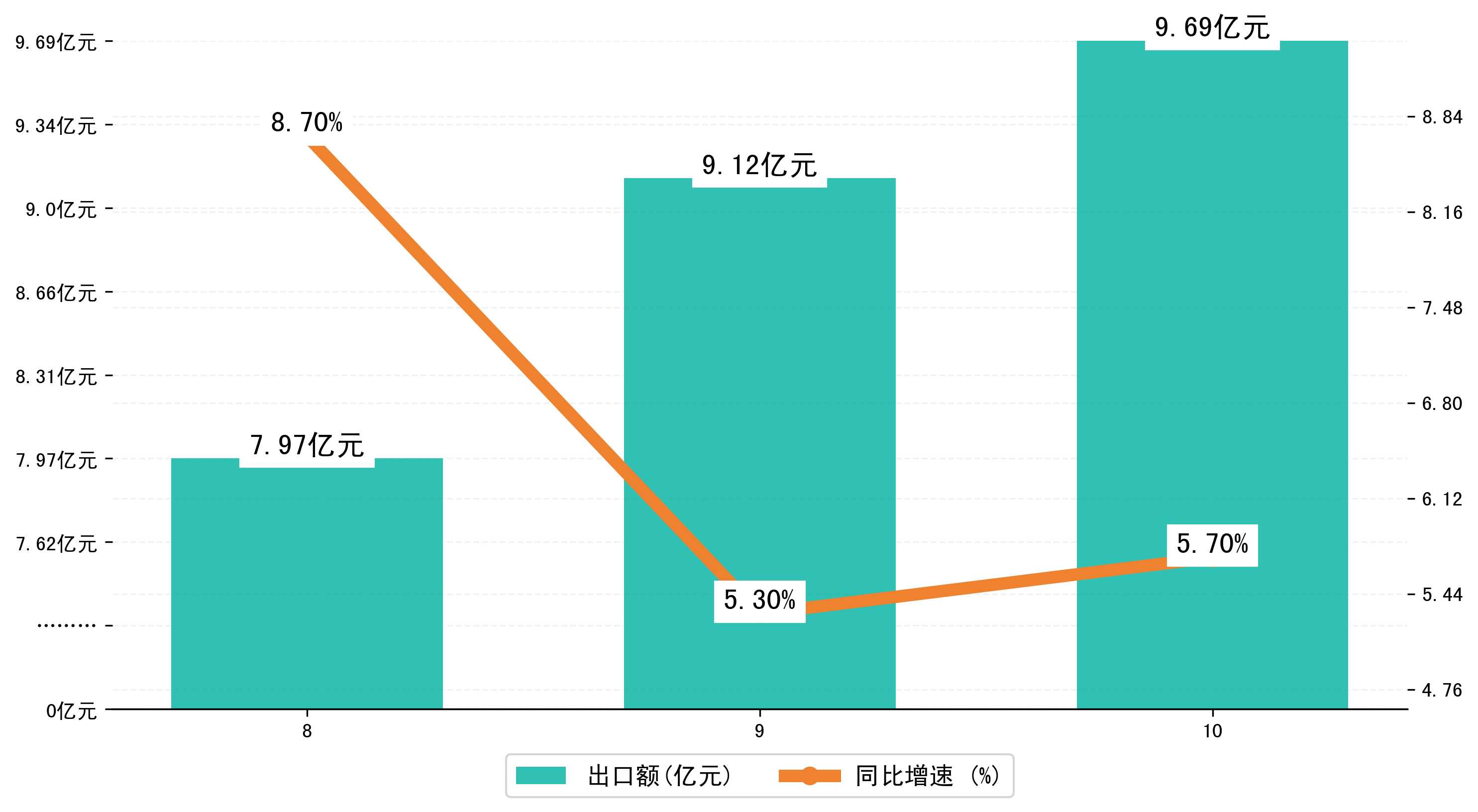 (图二:2023年8-10月甘肃省出口额)