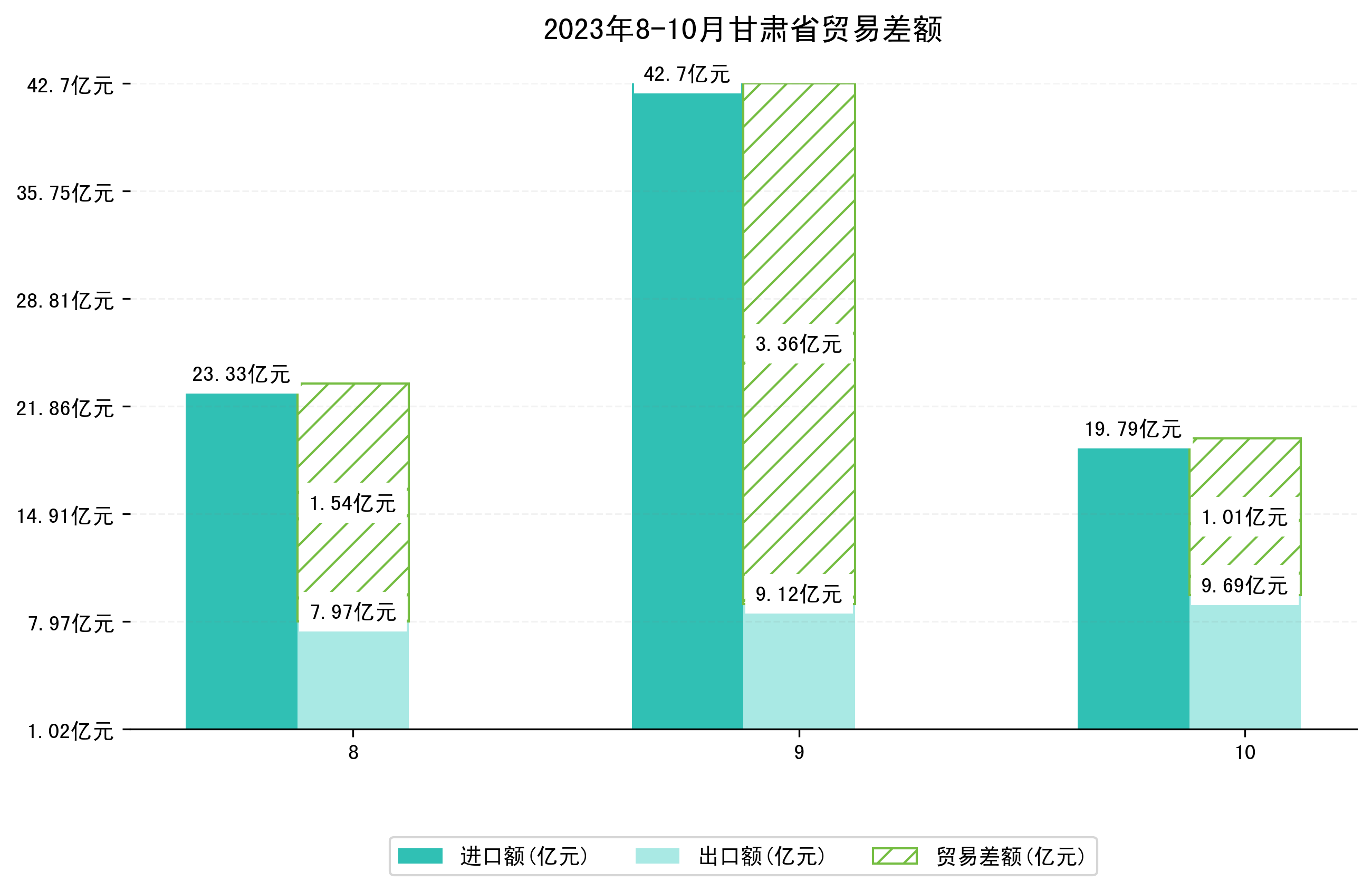 (图一:2023年8-10月甘肃省进出口总额)