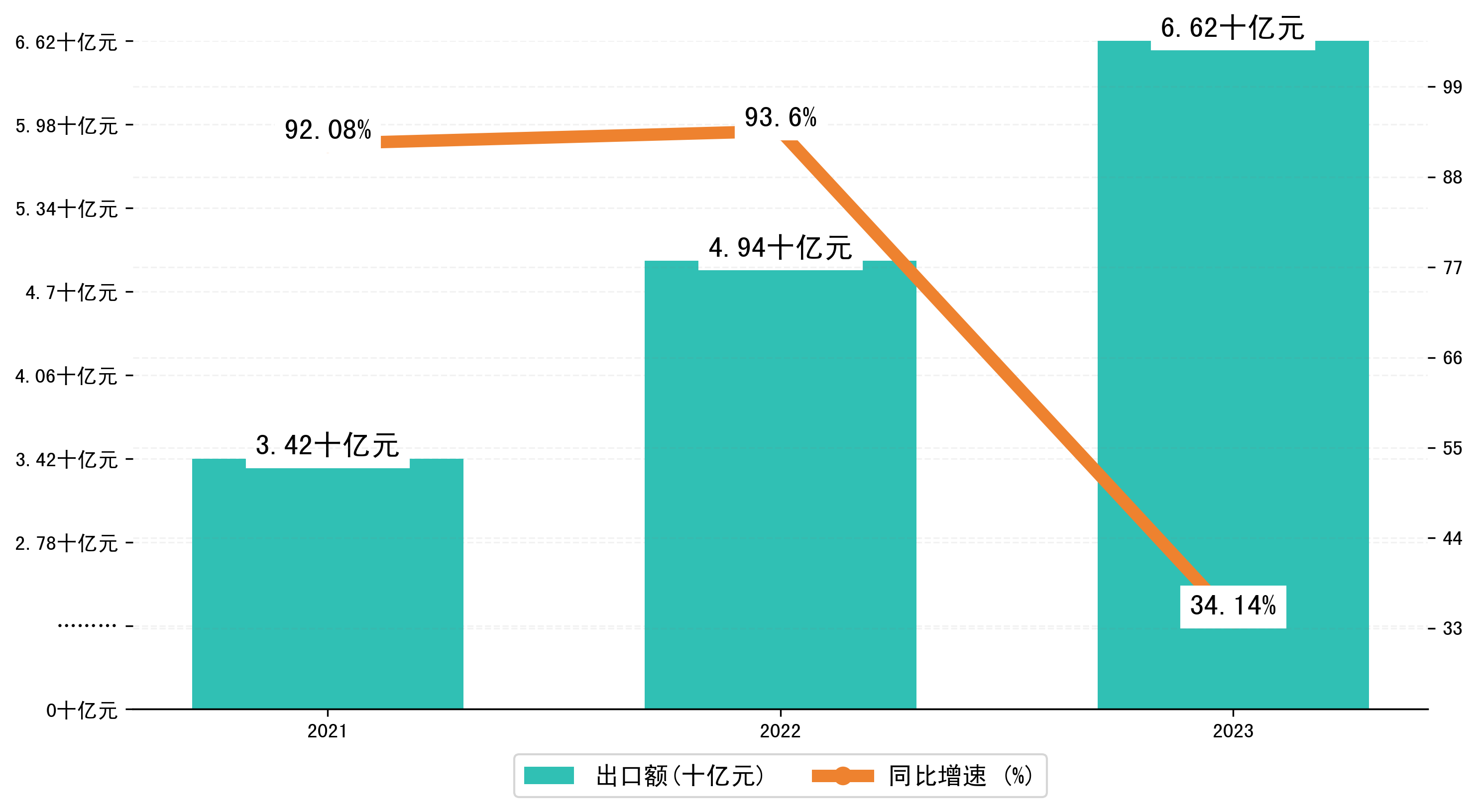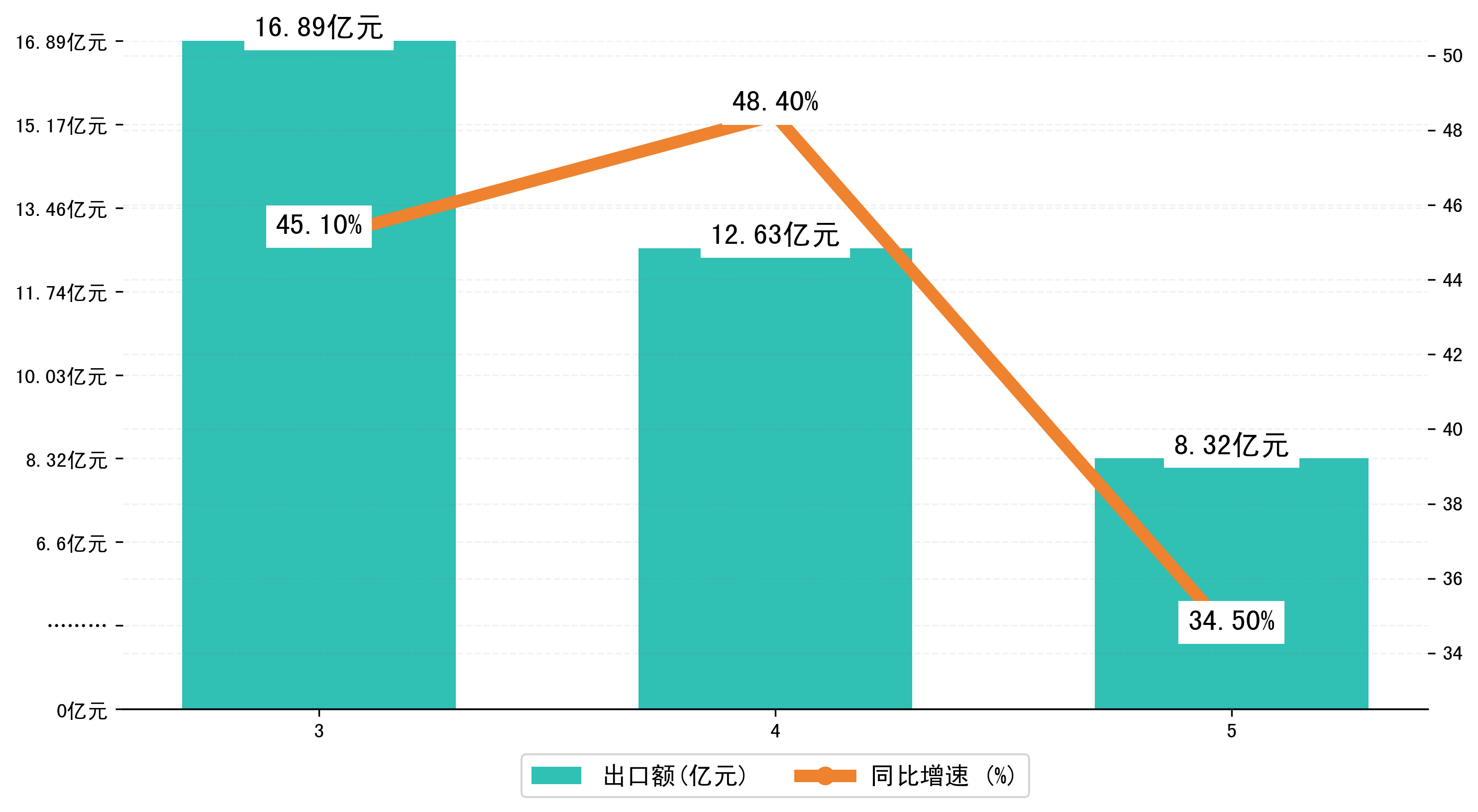 以人民币计,2023年1-5月甘肃省出口额为66,2031.1194万元,相比上年同期增加了16,8497.5569万元,同比增加了34.50%。
