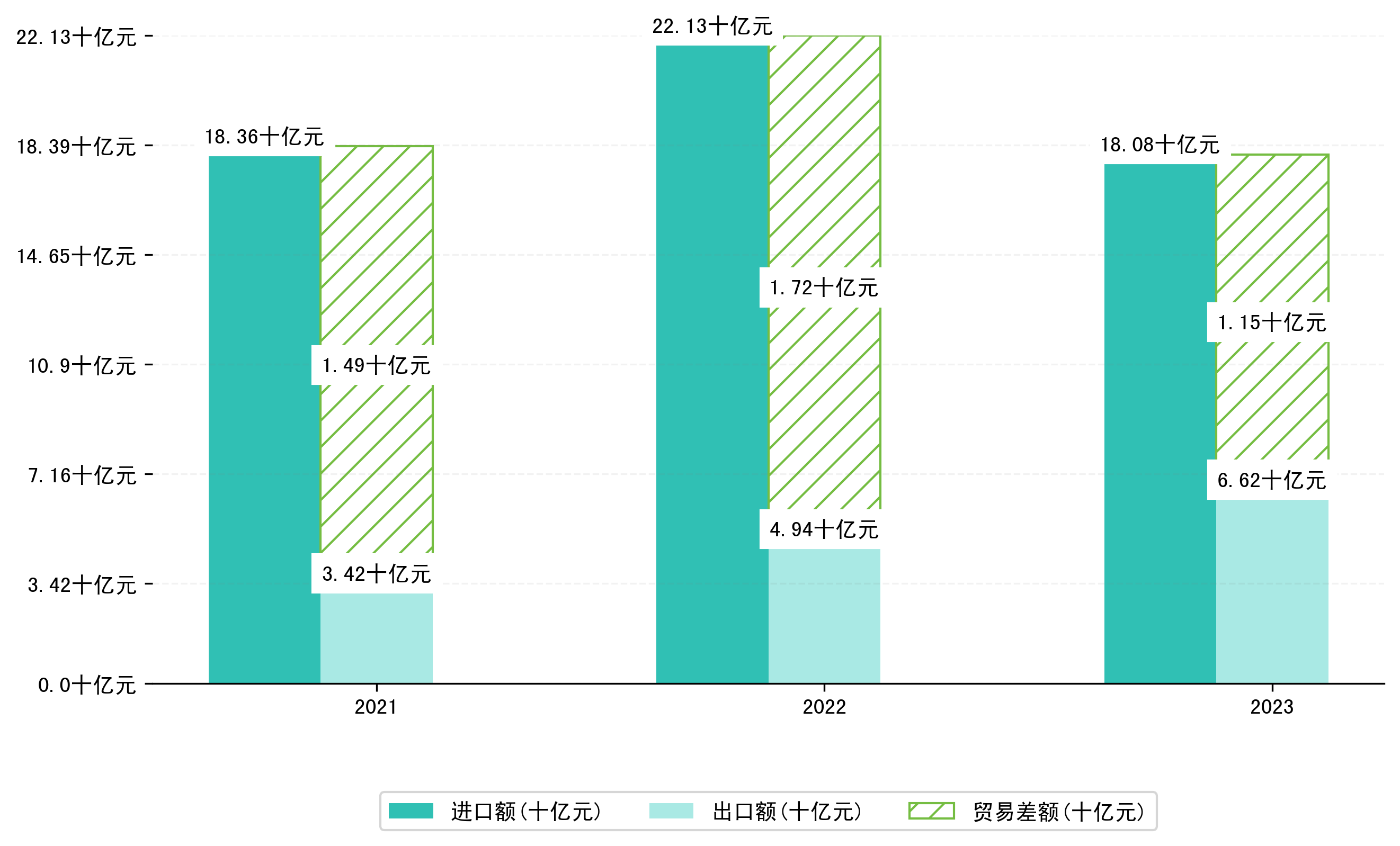 以人民币计,2023年5月甘肃省贸易差额为18,1100,8892万元(贸易逆差),相比上月减少了7,5789,0852万元,即1,1016,2470万美元;相比上年同期增加了21,9533,9323万元,同比增加-54.8%。