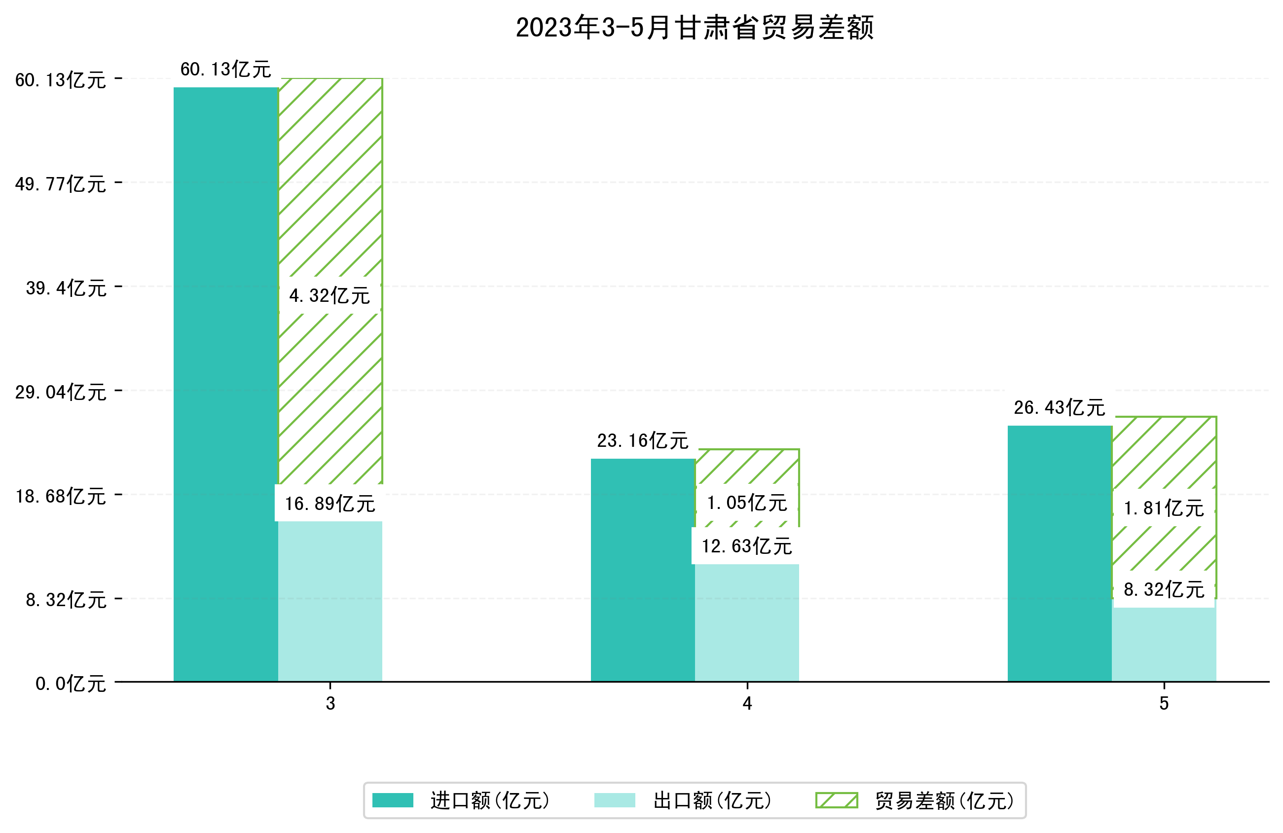 2023年5月甘肃省进出口总额及进出口差额统计分析
