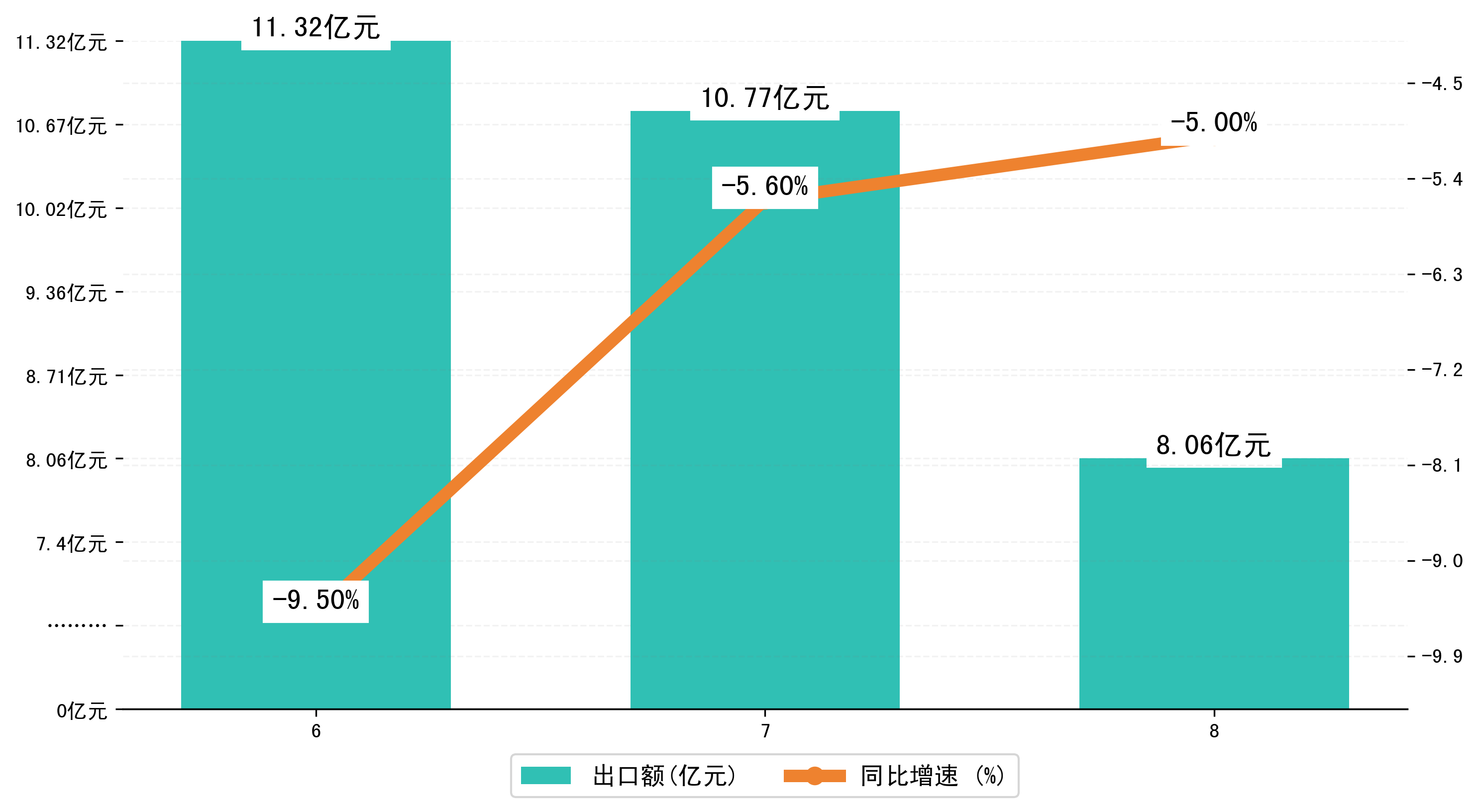 (图二:2024年6-8月甘肃省出口额)