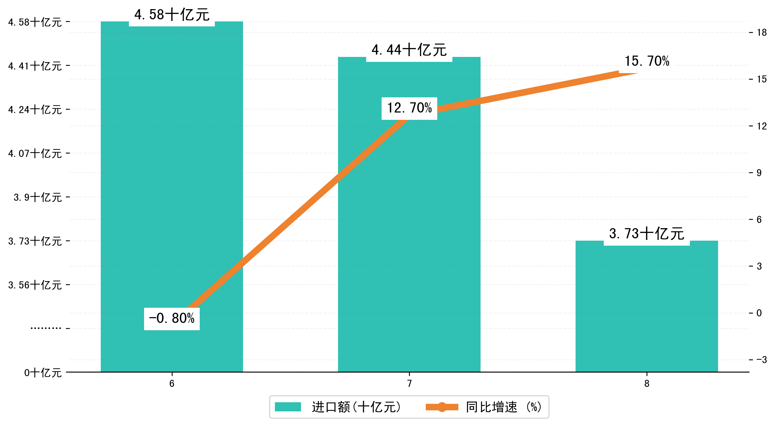 (图三:2024年6-8月甘肃省进口额)