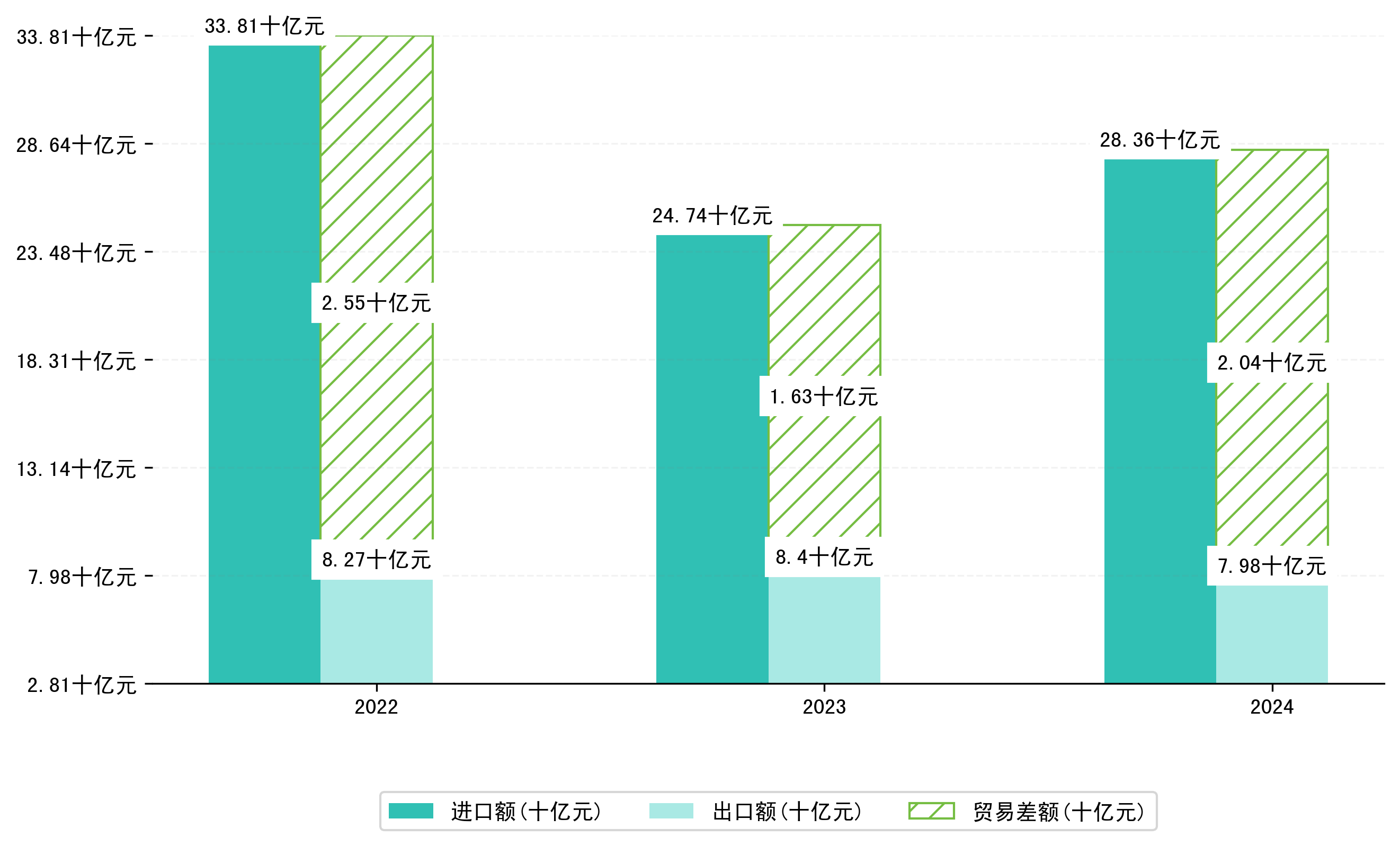 以美元计,2024年1-8月甘肃省贸易差额为28,6649,1390万美元(贸易逆差),相比上年同期减少了5,1325,2980万美元,同比减少21.81%。