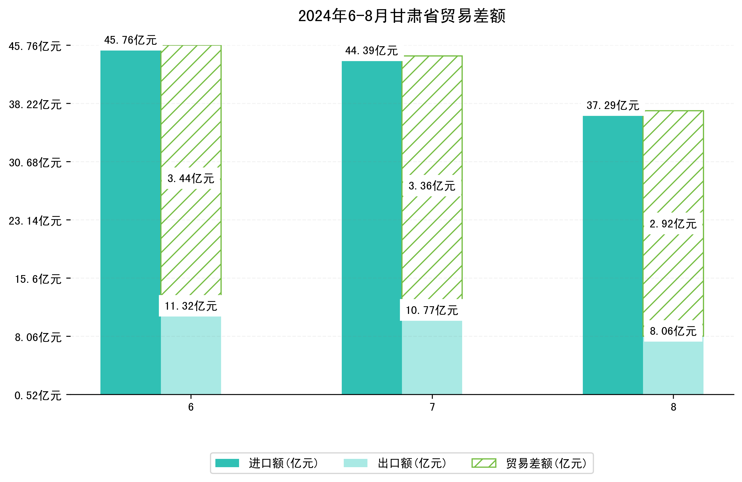 (图一:2024年6-8月甘肃省进出口总额)