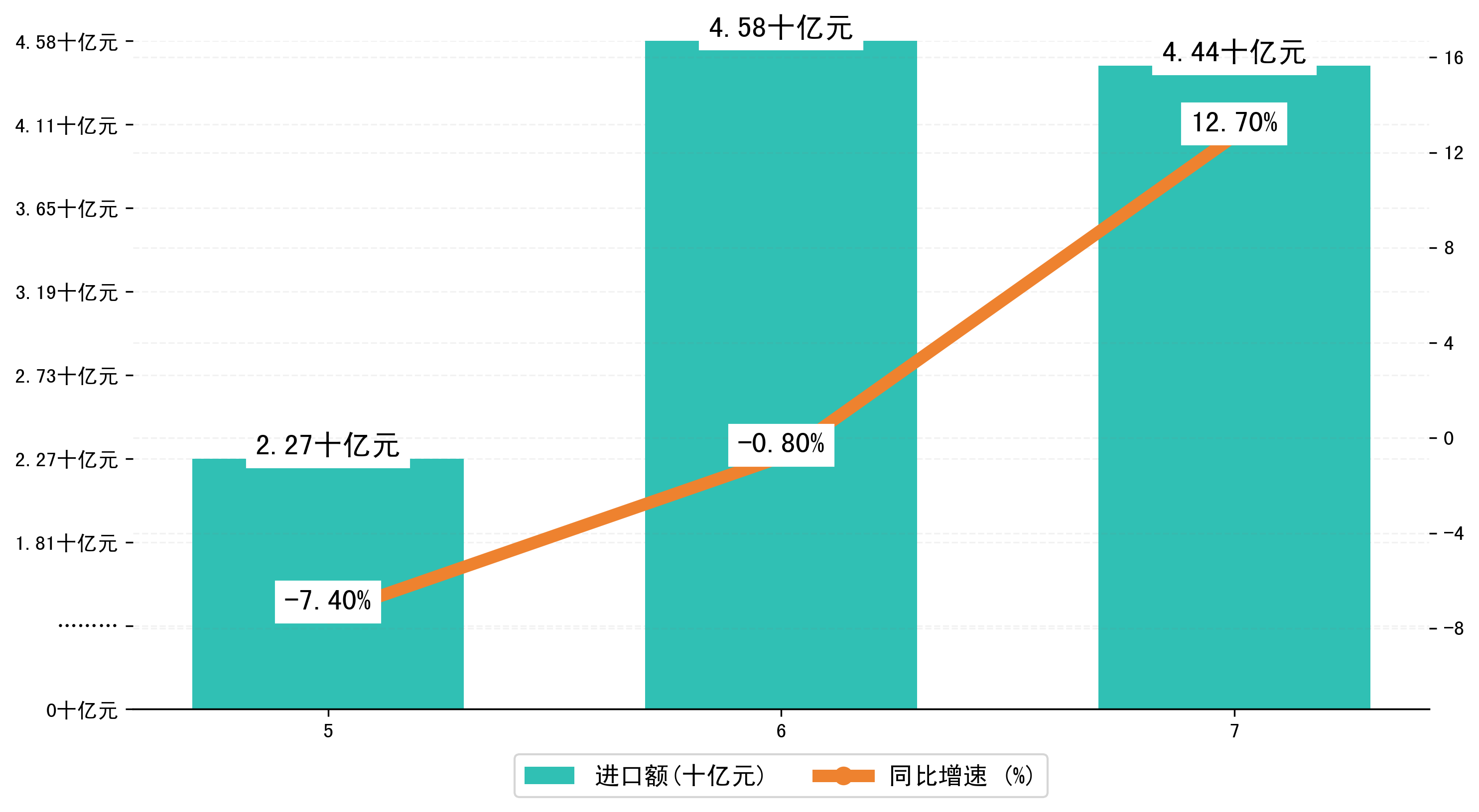 以美元计,2024年1-7月甘肃省进口额为35,2285.9562万美元,相比上年同期增加了2,9758.2064万美元,同比增加9.70%。