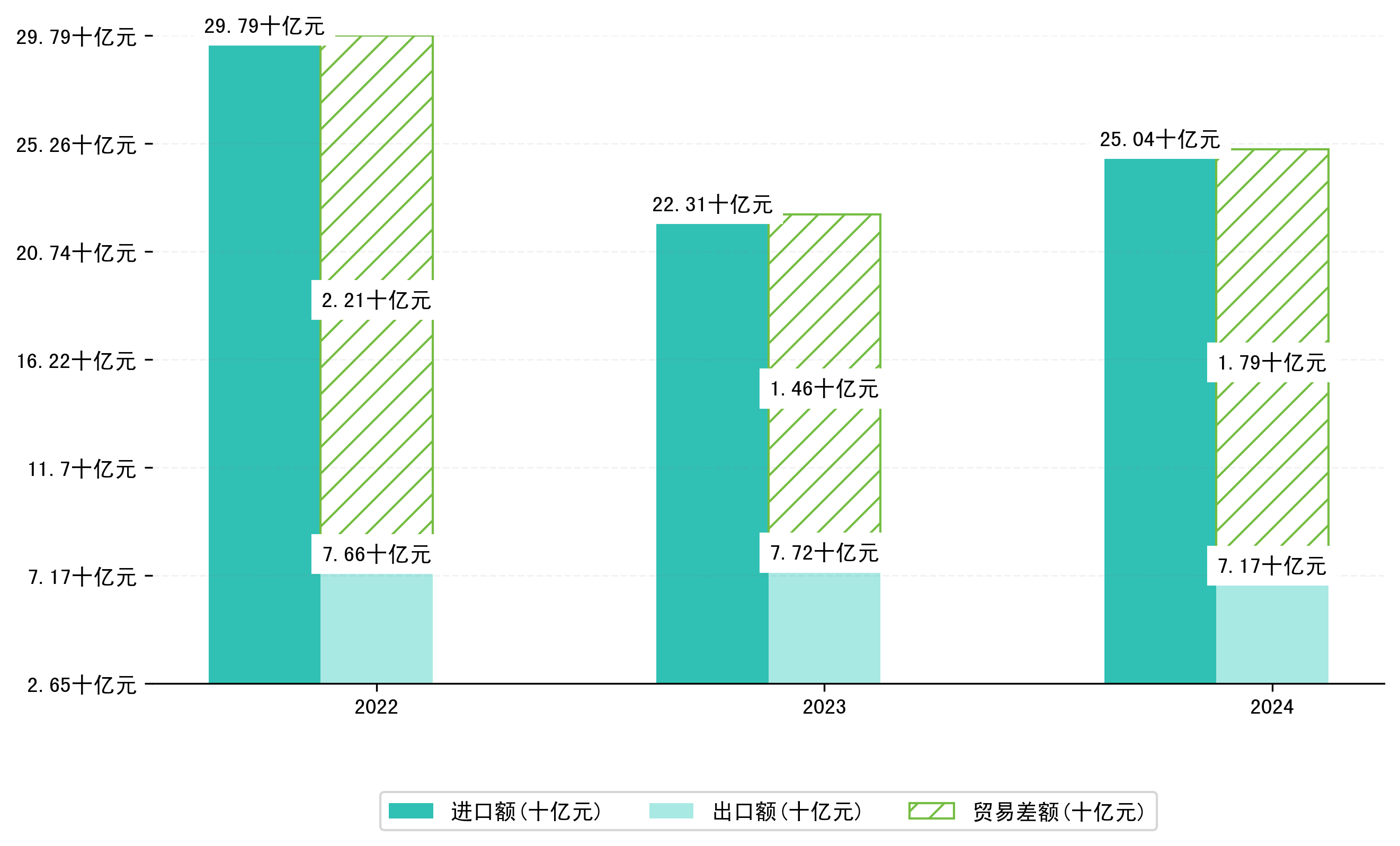 以美元计,2024年1-7月甘肃省贸易差额为25,1324,0702万美元(贸易逆差),相比上年同期减少了4,0401,9763万美元,同比减少19.15%。