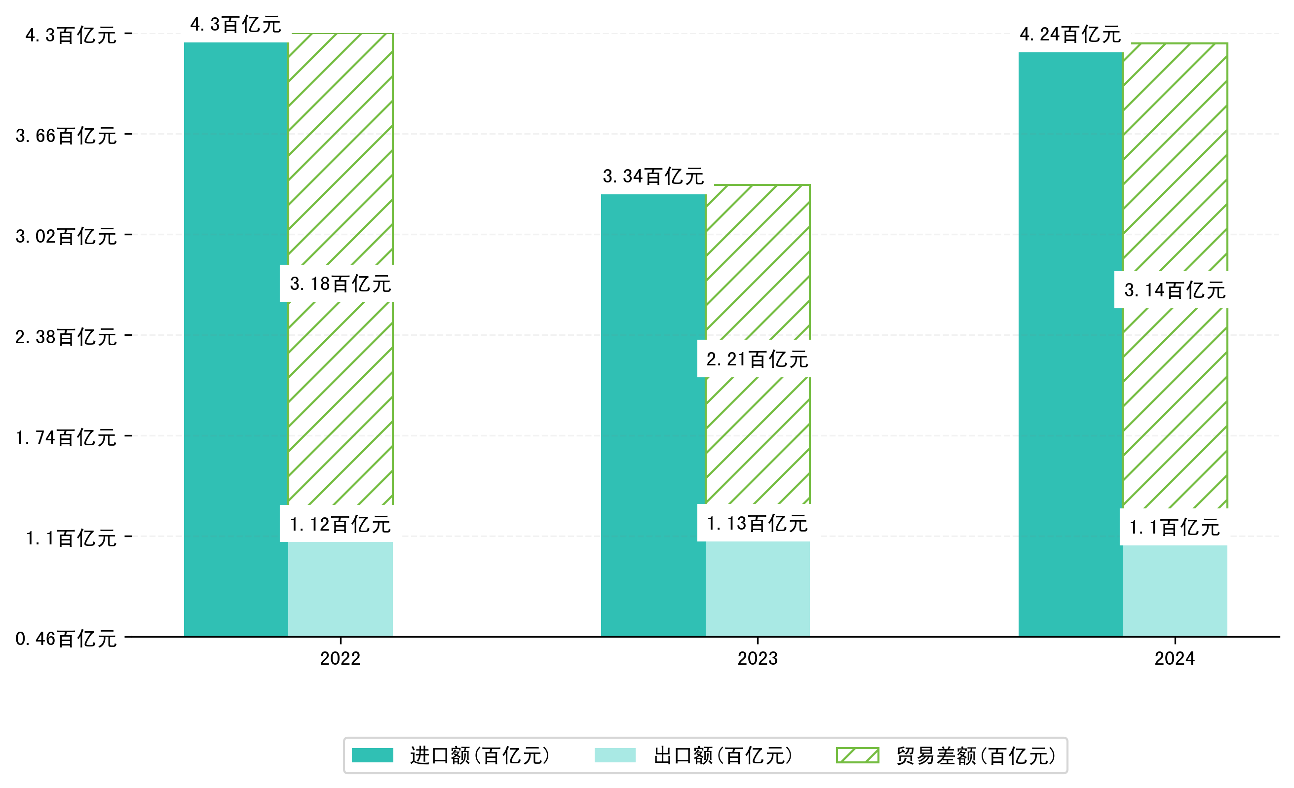 以人民币计,2024年11月甘肃省贸易差额为41,2376,2368万元(贸易逆差),相比上月减少了12,4846,9393万元,即1,7535,2645万美元;相比上年同期减少了25,3241,1845万元,同比减少159.14%。