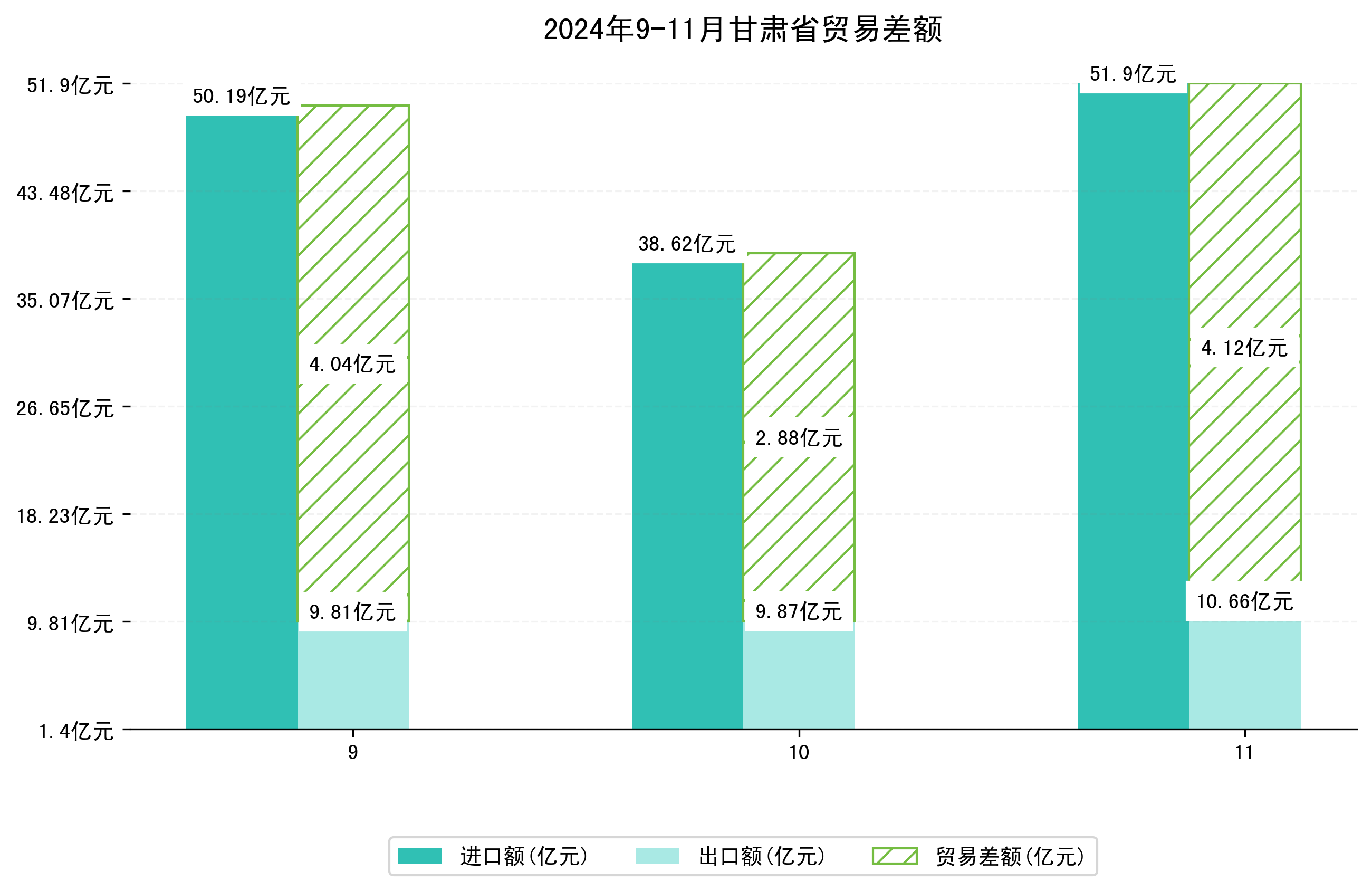 2024年11月甘肃省进出口总额及进出口差额统计分析