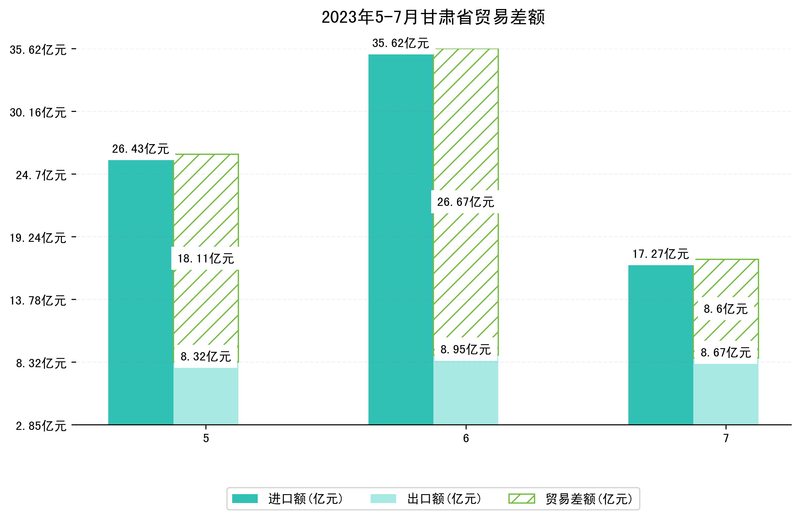 2023年7月甘肃省进出口总额及进出口差额统计分析