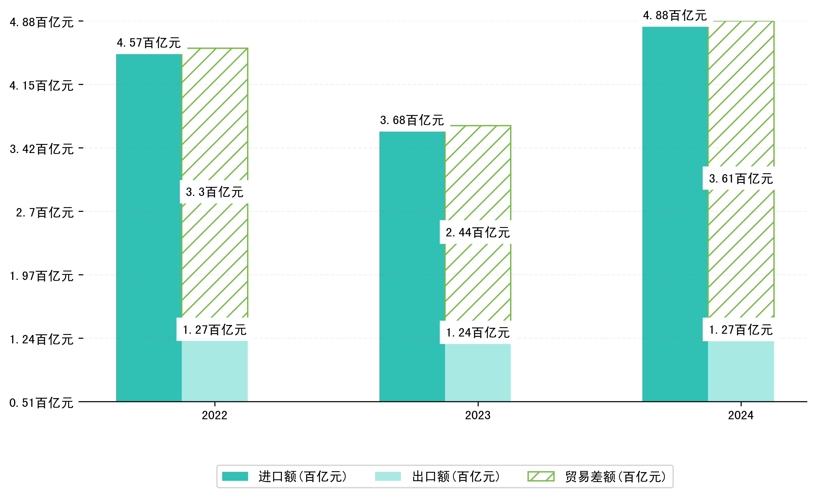 以美元计,2024年1-12月甘肃省贸易差额为50,7532,6553万美元(贸易逆差),相比上年同期减少了15,9929,0037万美元,同比减少46.01%。
