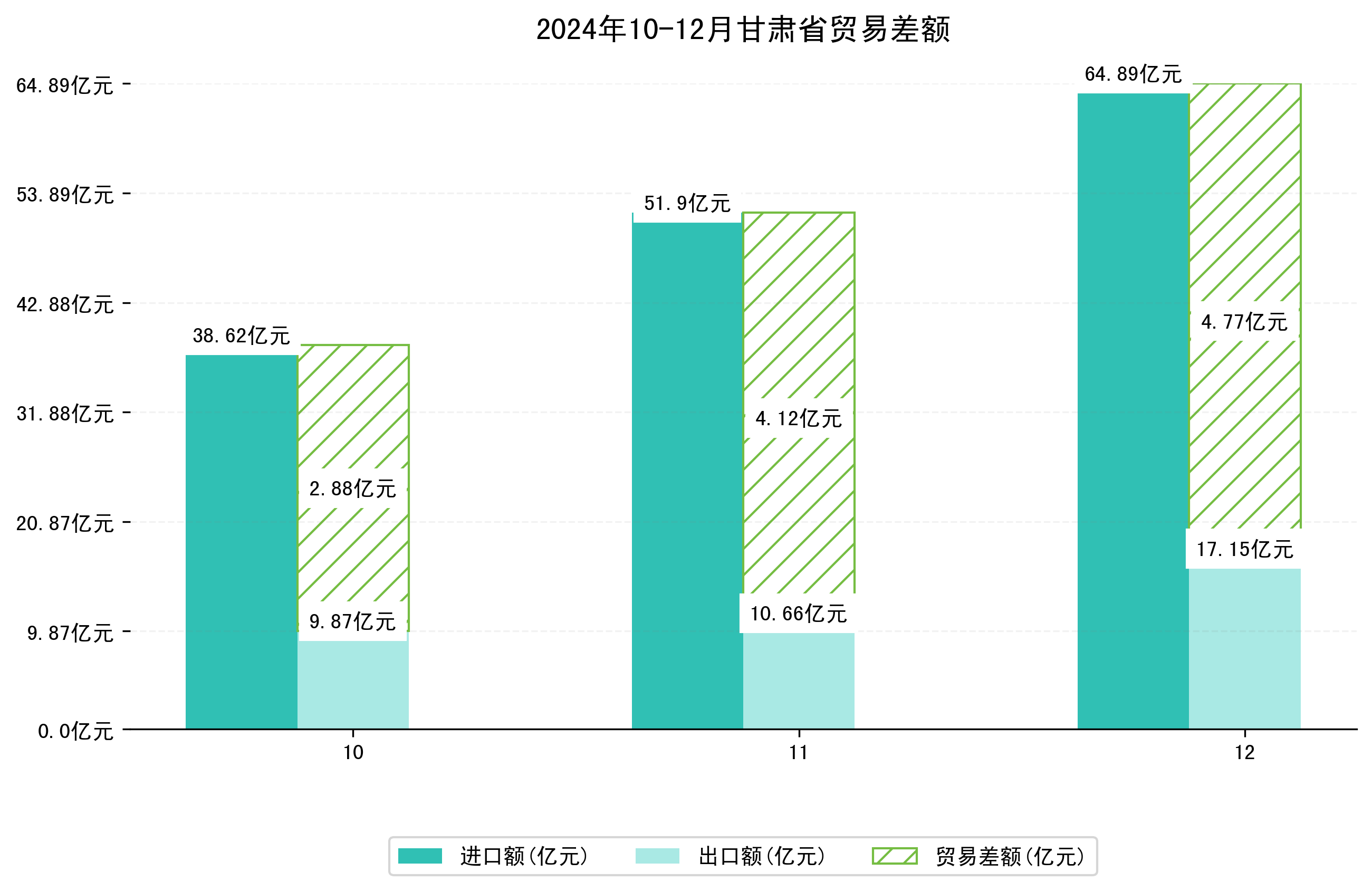2024年12月甘肃省进出口总额及进出口差额统计分析