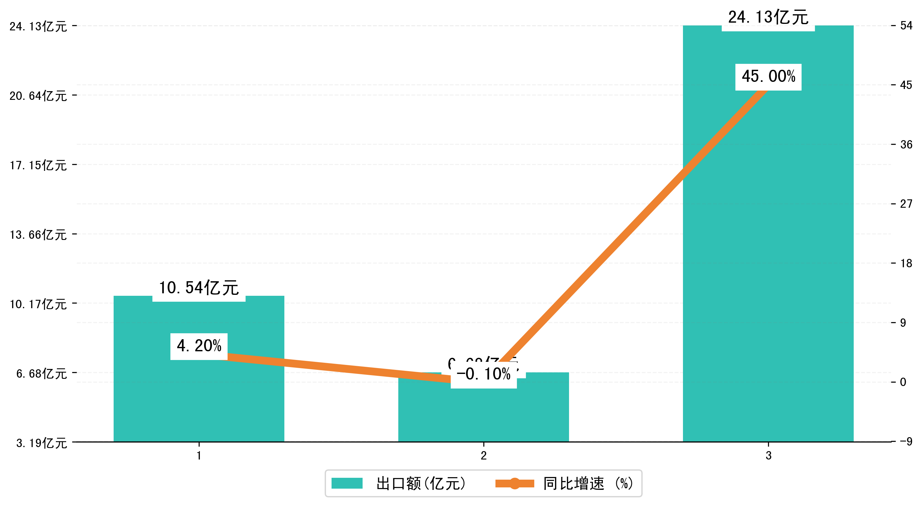 以人民币计,2025年1-3月甘肃省出口额为41,3457.9025万元,相比上年同期增加了12,8410.1504万元,同比增加了45.00%。