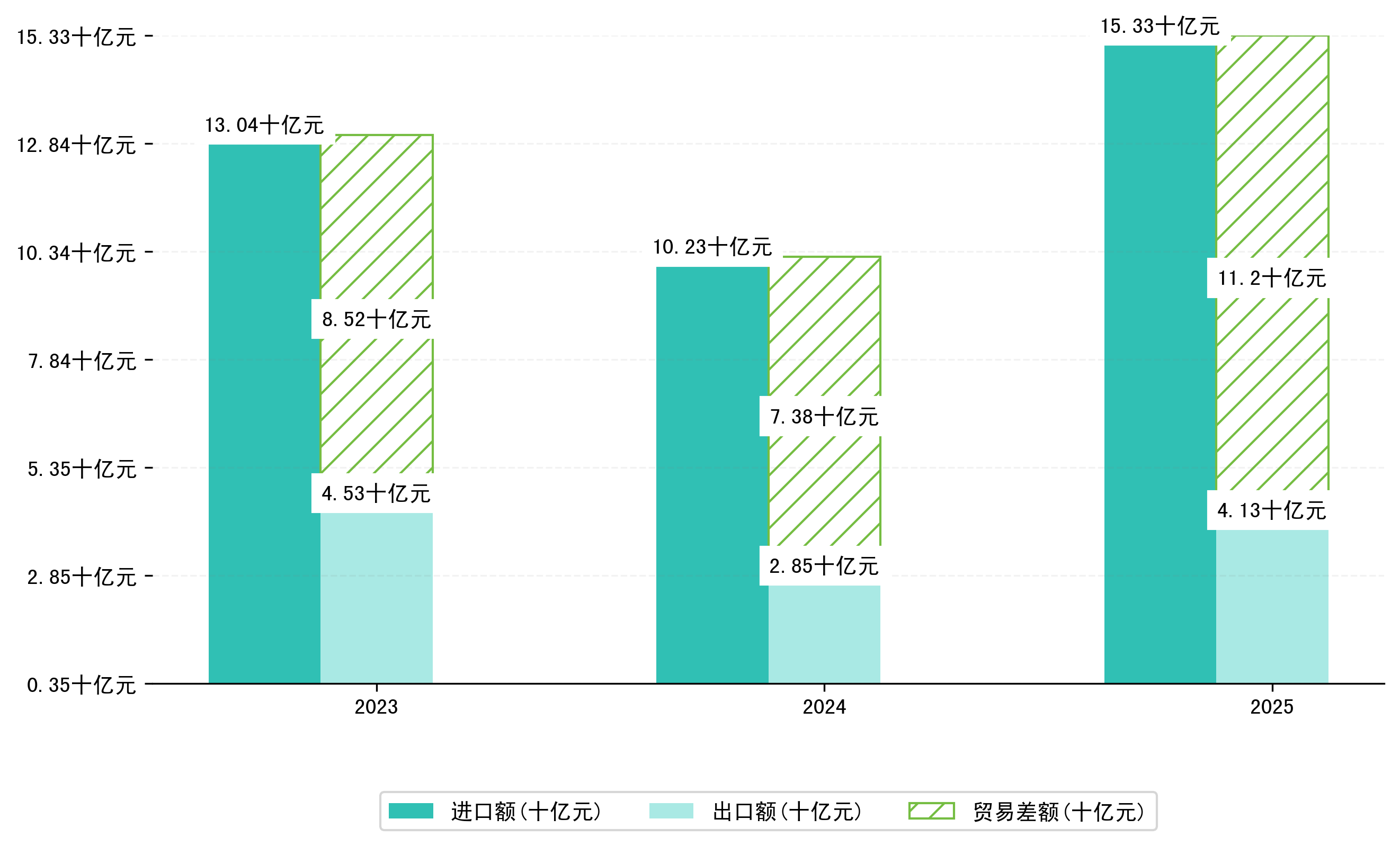 以美元计,2025年1-3月甘肃省贸易差额为15,5963,5788万美元(贸易逆差),相比上年同期减少了5,2247,2070万美元,同比减少50.38%。