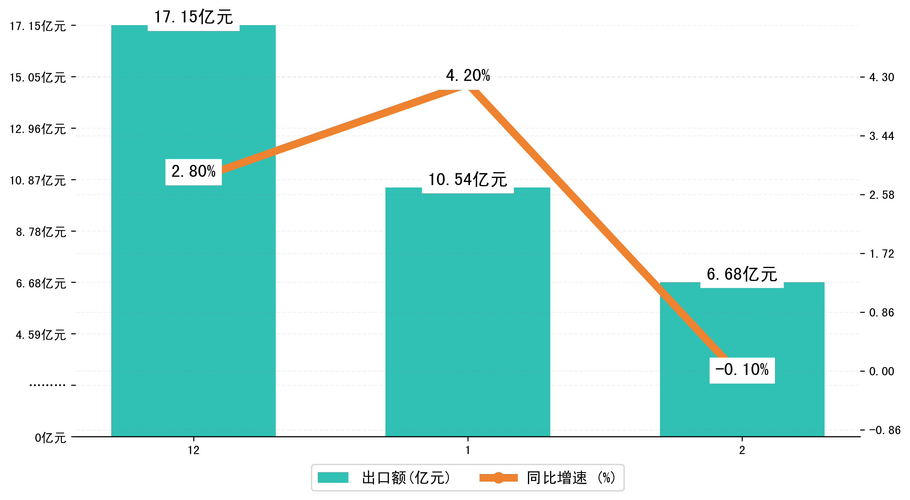 以美元计,2025年1-2月甘肃省贸易差额为12,2845,5822万美元(贸易逆差),相比上年同期减少了5,8170,5596万美元,同比减少89.94%。