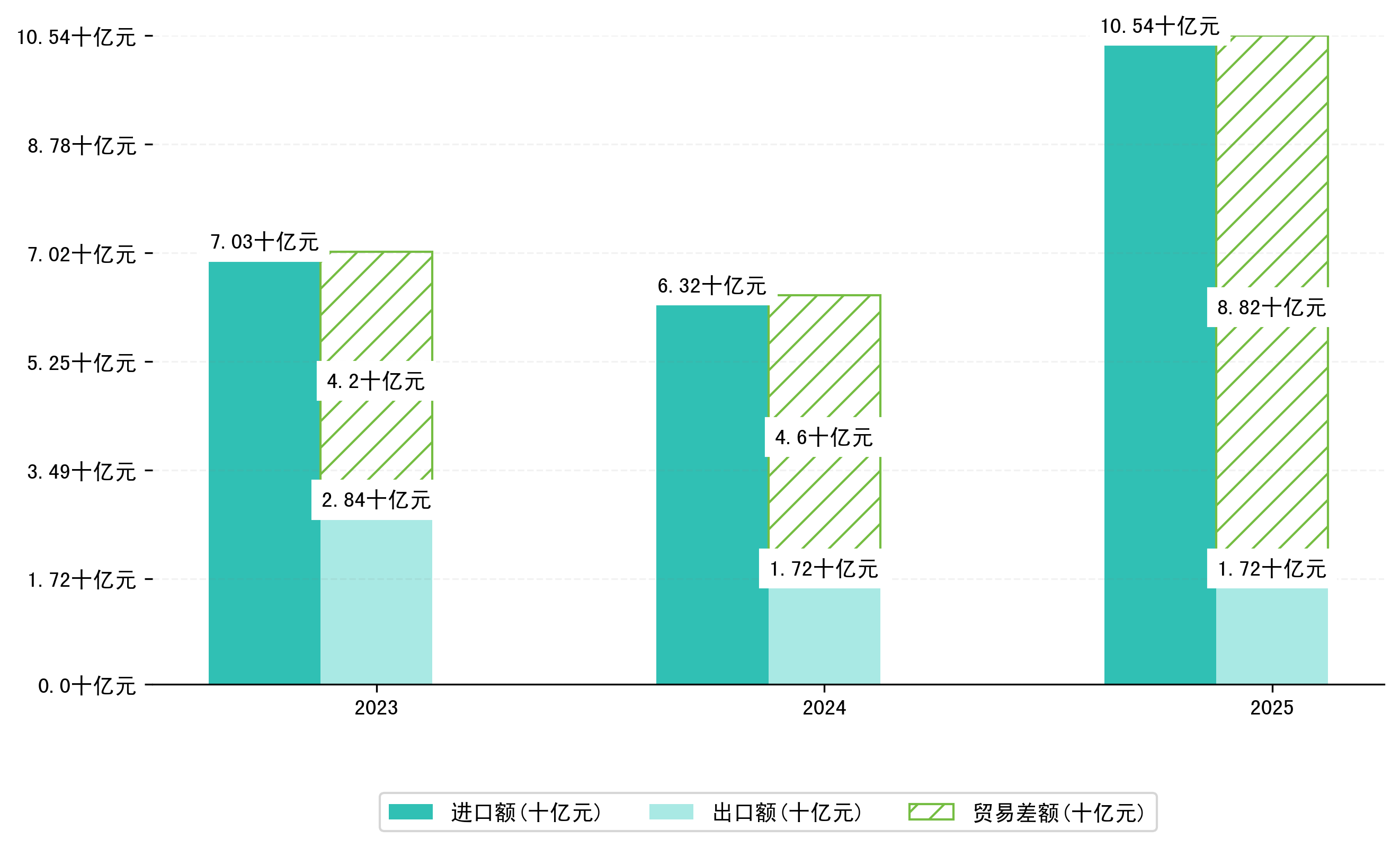 以人民币计,2025年1-2月甘肃省贸易差额为88,2268,0833万元(贸易逆差),相比上年同期减少了42,2232,6710万元,同比减少91.78%。