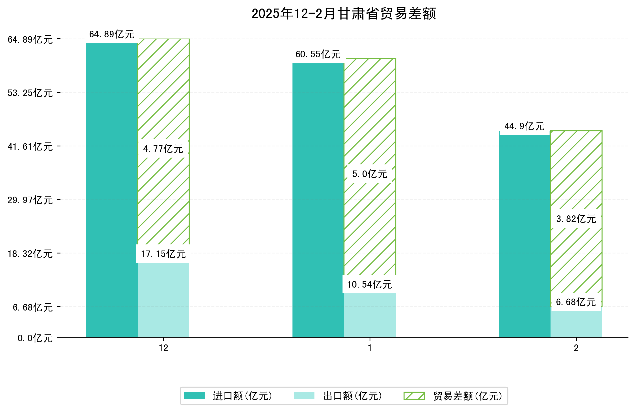 2025年2月甘肃省进出口总额及进出口差额统计分析