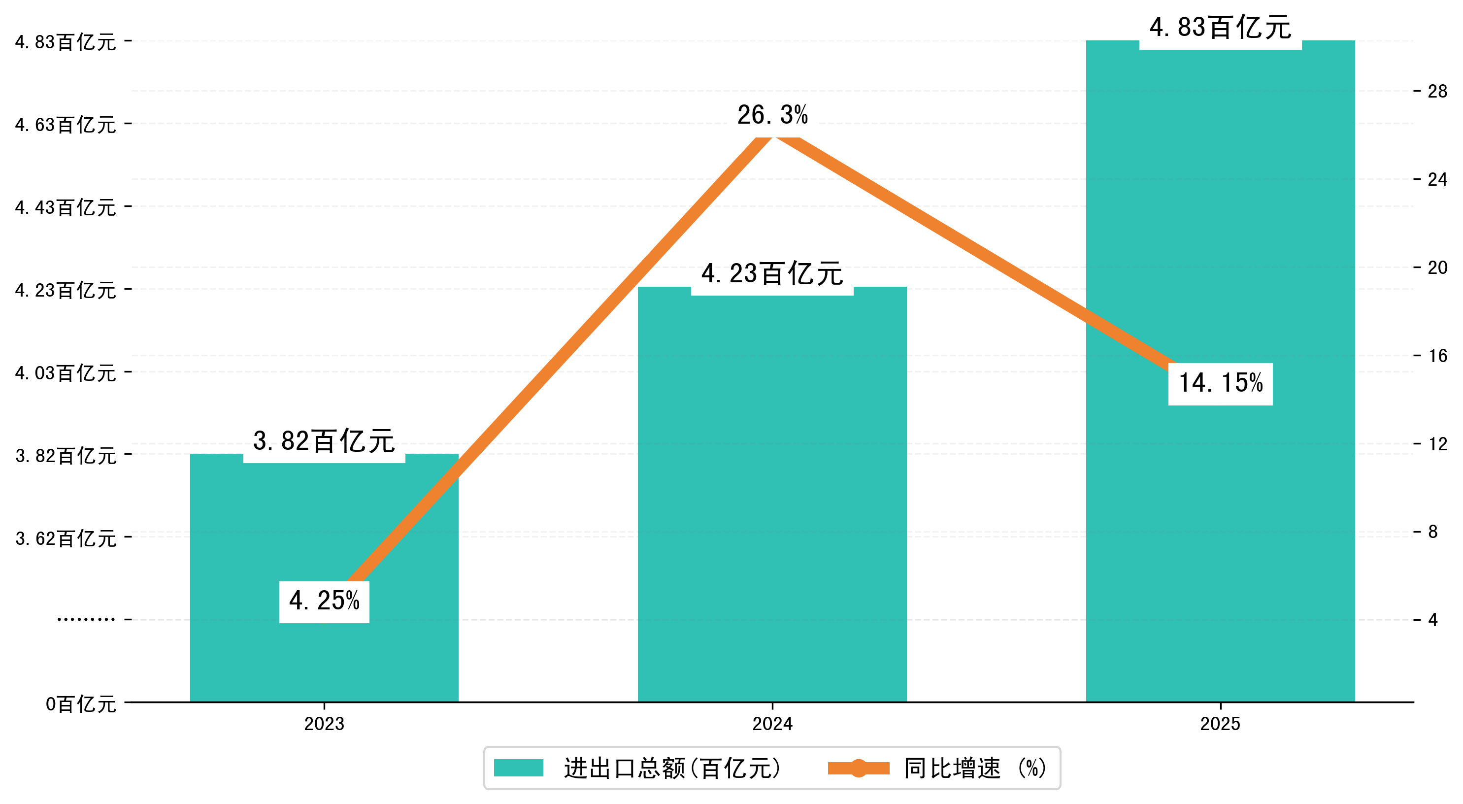 以人民币计,2025年1-9月甘肃省进出口总额为483,0244.6445万元,相比上年同期增加了59,8711.0115万元,同比增加了14.50%。