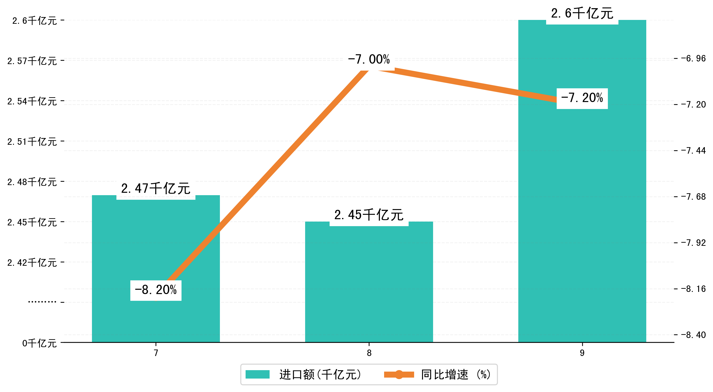 以人民币计,2023年9月广东省进口额为2602,9979.5816万元,相比上月增加了152,7253.8698万元;相比上年同期减少了231,5937.5761万元,同比减少了-7.20%。