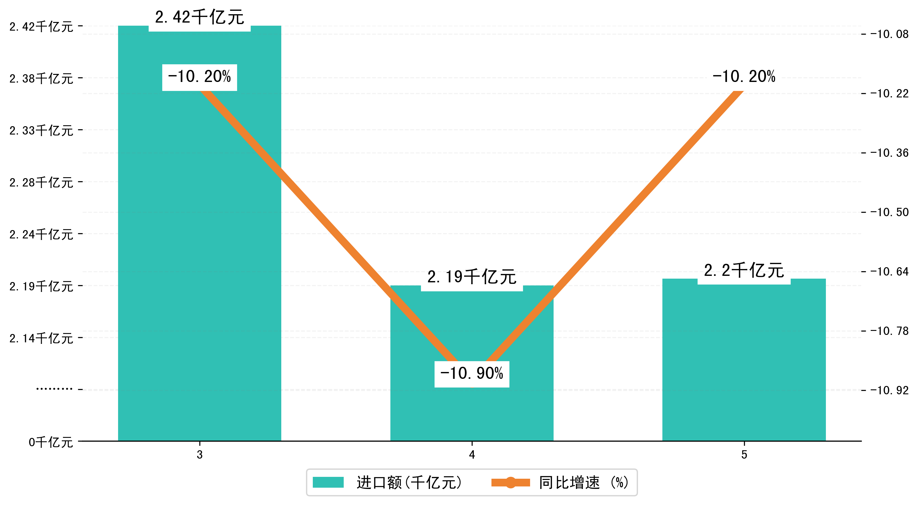 以人民币计,2023年5月广东省进口额为2195,9101.7534万元,相比上月增加了5,9236.0281万元;相比上年同期减少了182,5859.9499万元,同比减少了-10.20%。