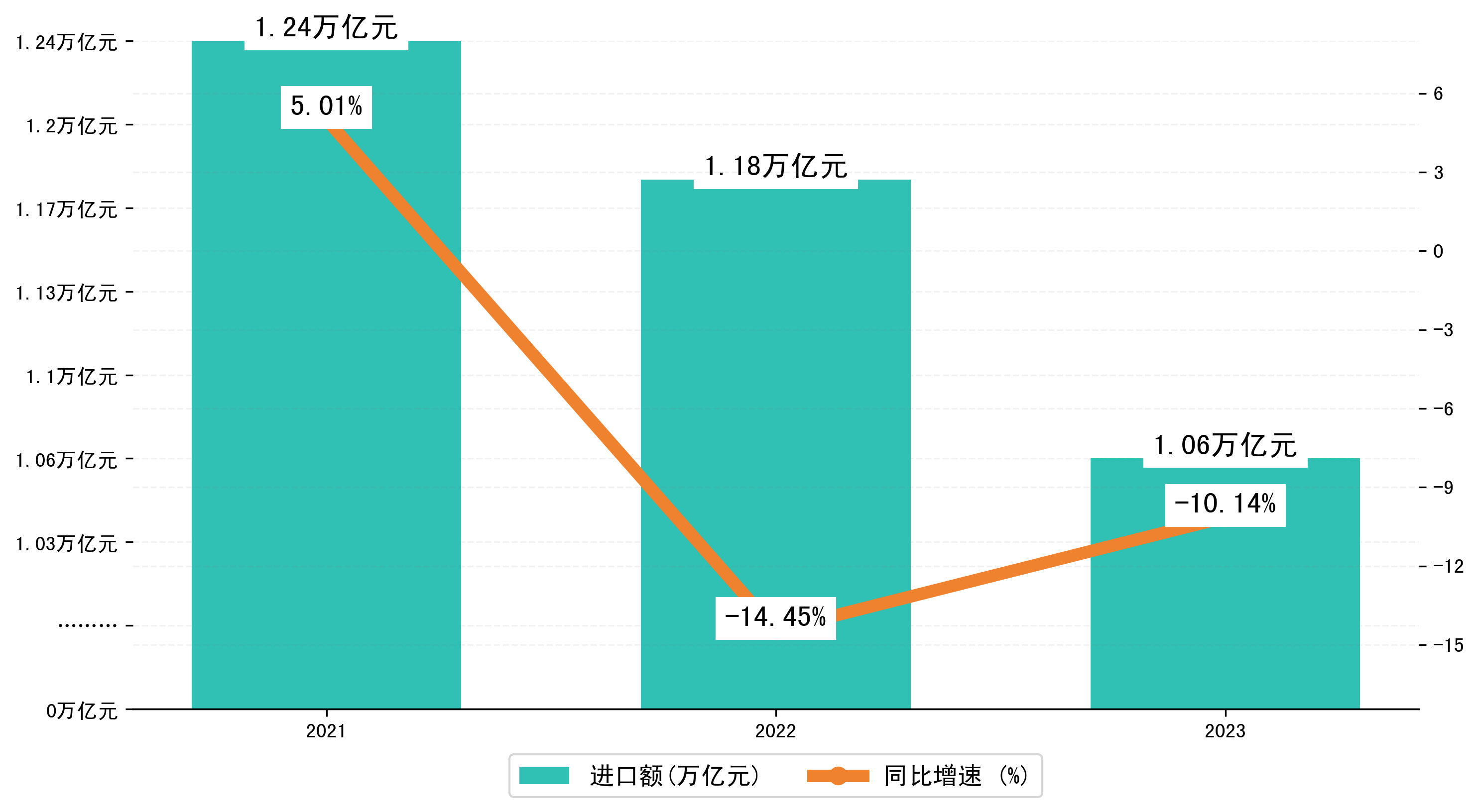 以人民币计,2023年1-5月广东省进口额为1,0610,6185.5038万元,相比上年同期减少了1197,0583.2593万元,同比减少了-10.20%。