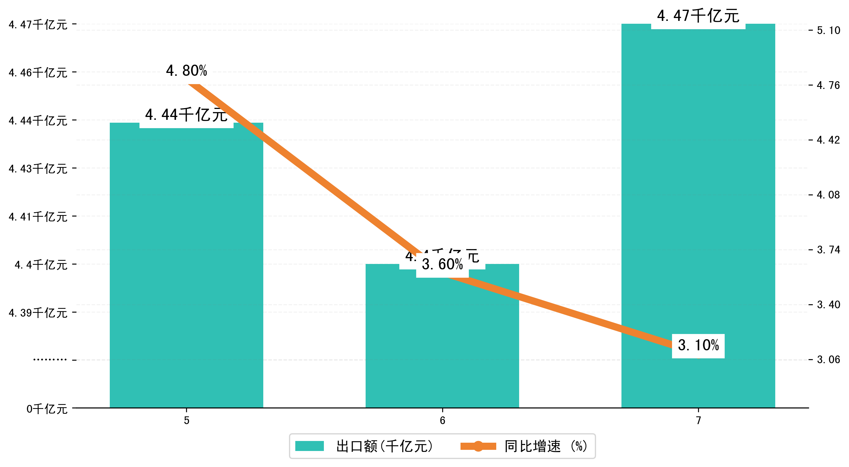 以人民币计,2023年1-7月广东省出口额为3,0006,6812.49万元,相比上年同期增加了894,5482.9627万元,同比增加了3.10%。