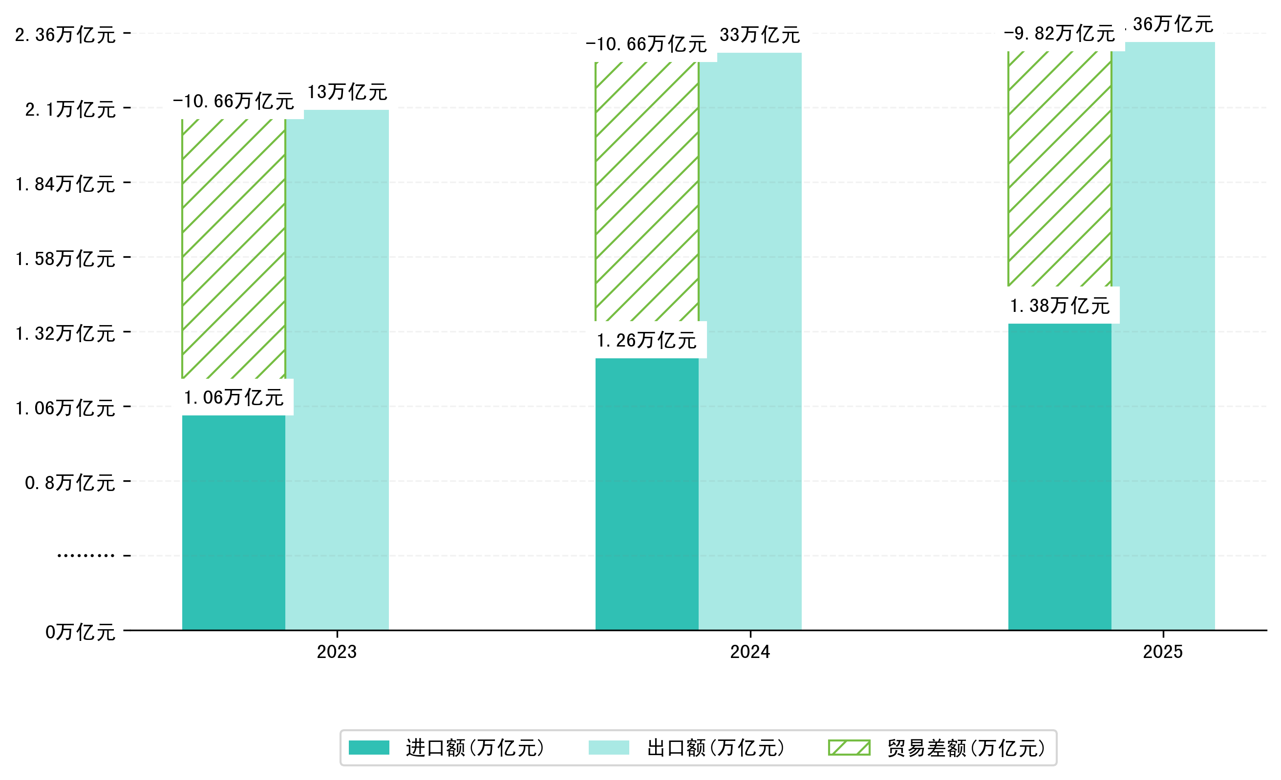 以人民币计,2025年1-5月广东省贸易差额为9815,1358,7154万元(贸易顺差),相比上年同期减少了842,1696,0722万元,同比减少-7.9%。
