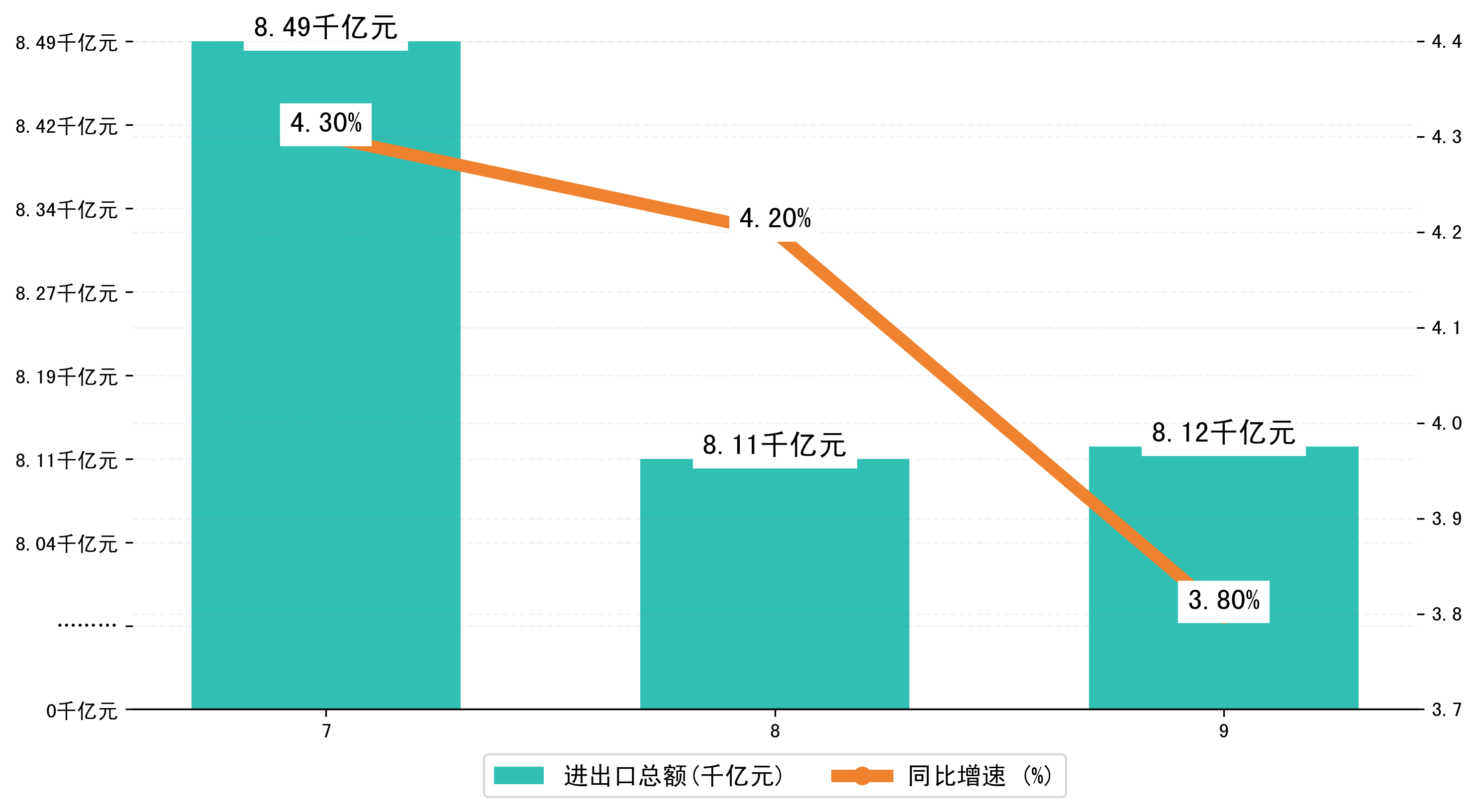 以人民币计,2025年9月广东省进出口总额为8124,9293.2675万元,相比上月增加了11,2732.5306万元;相比上年同期增加了64,9421.4565万元,同比增加了3.80%。