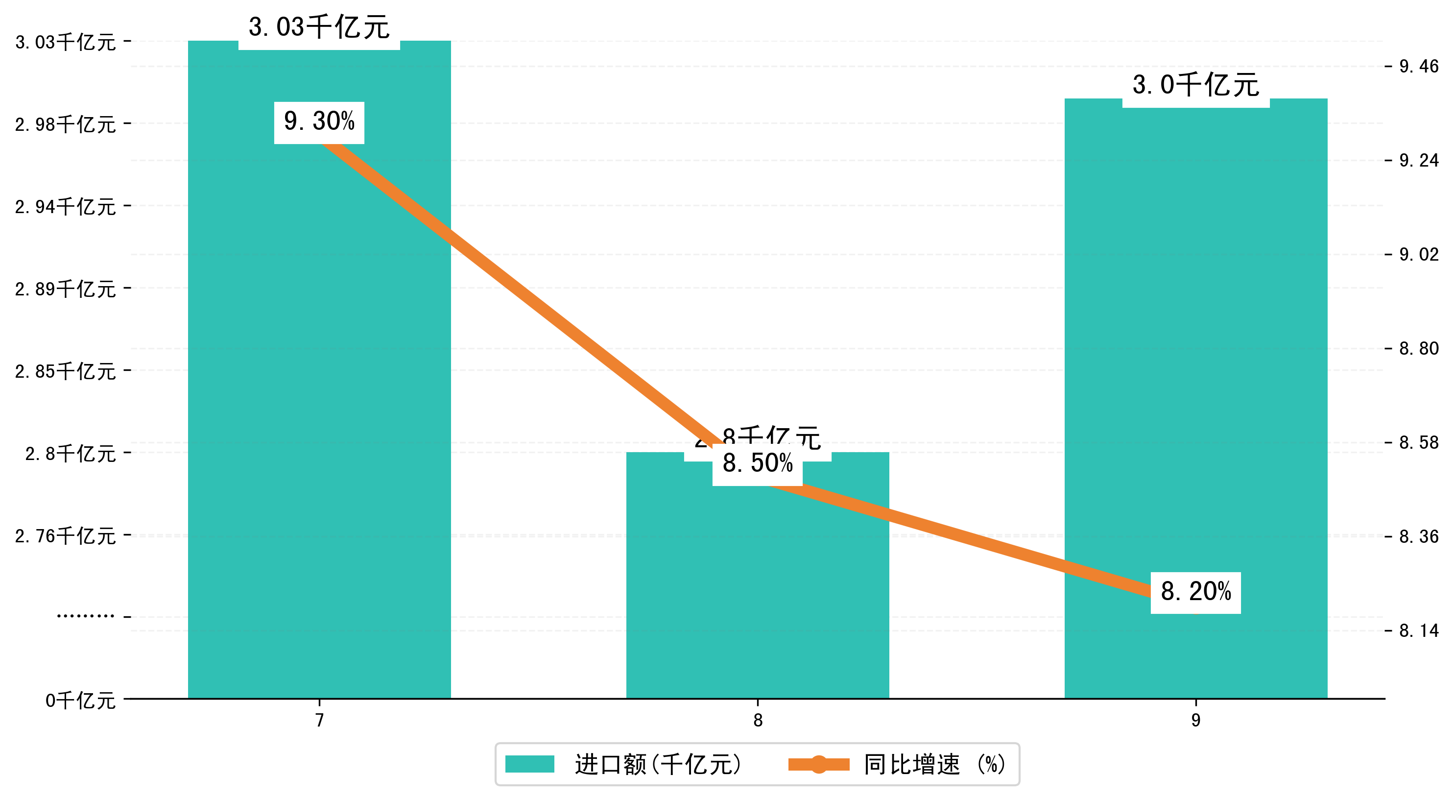 以人民币计,2025年9月广东省进口额为2998,3942.9431万元,相比上月增加了196,1136.3513万元;相比上年同期增加了156,2384.8249万元,同比增加了8.20%。