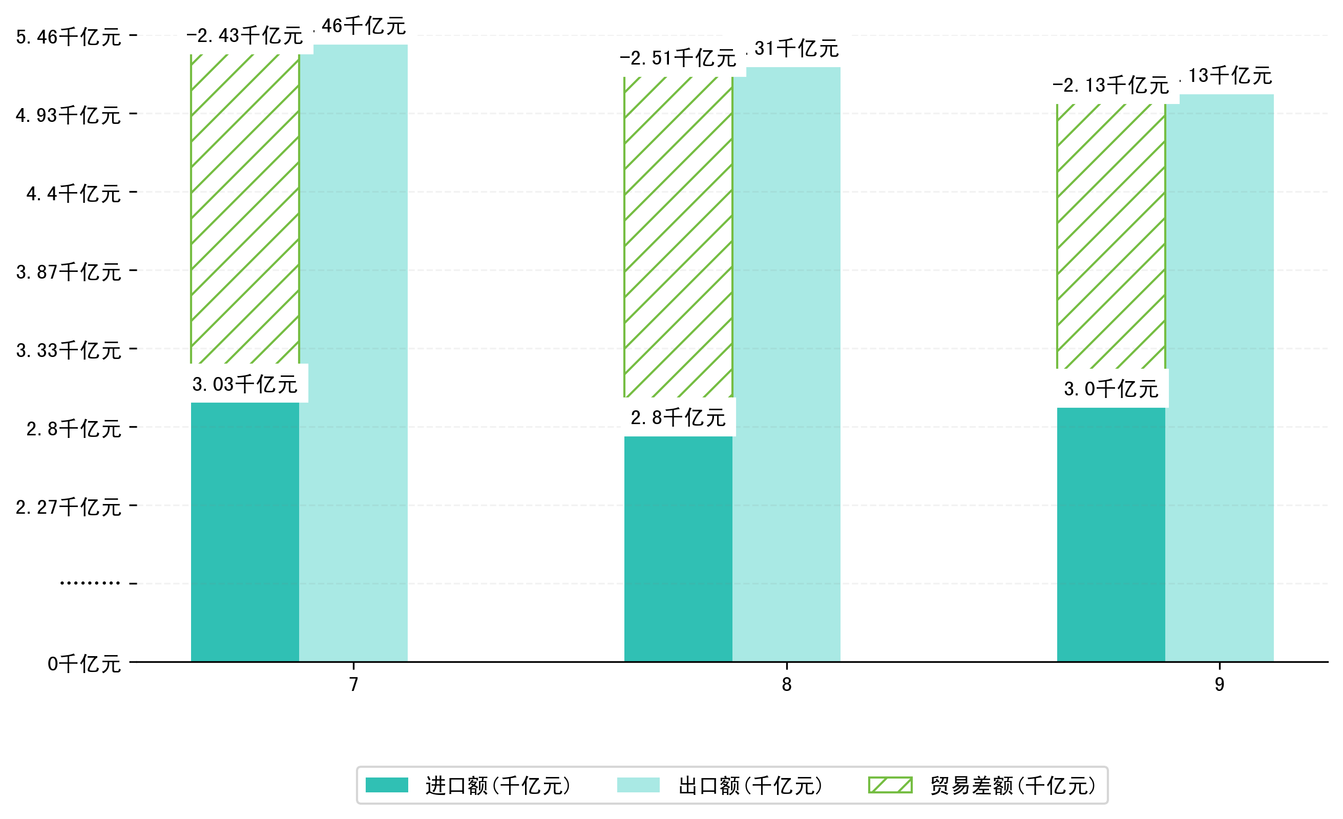 以人民币计,2025年1-9月广东省进出口总额为7,0175,6579.3351万元,相比上年同期增加了2627,0635.1707万元,同比增加了3.80%。