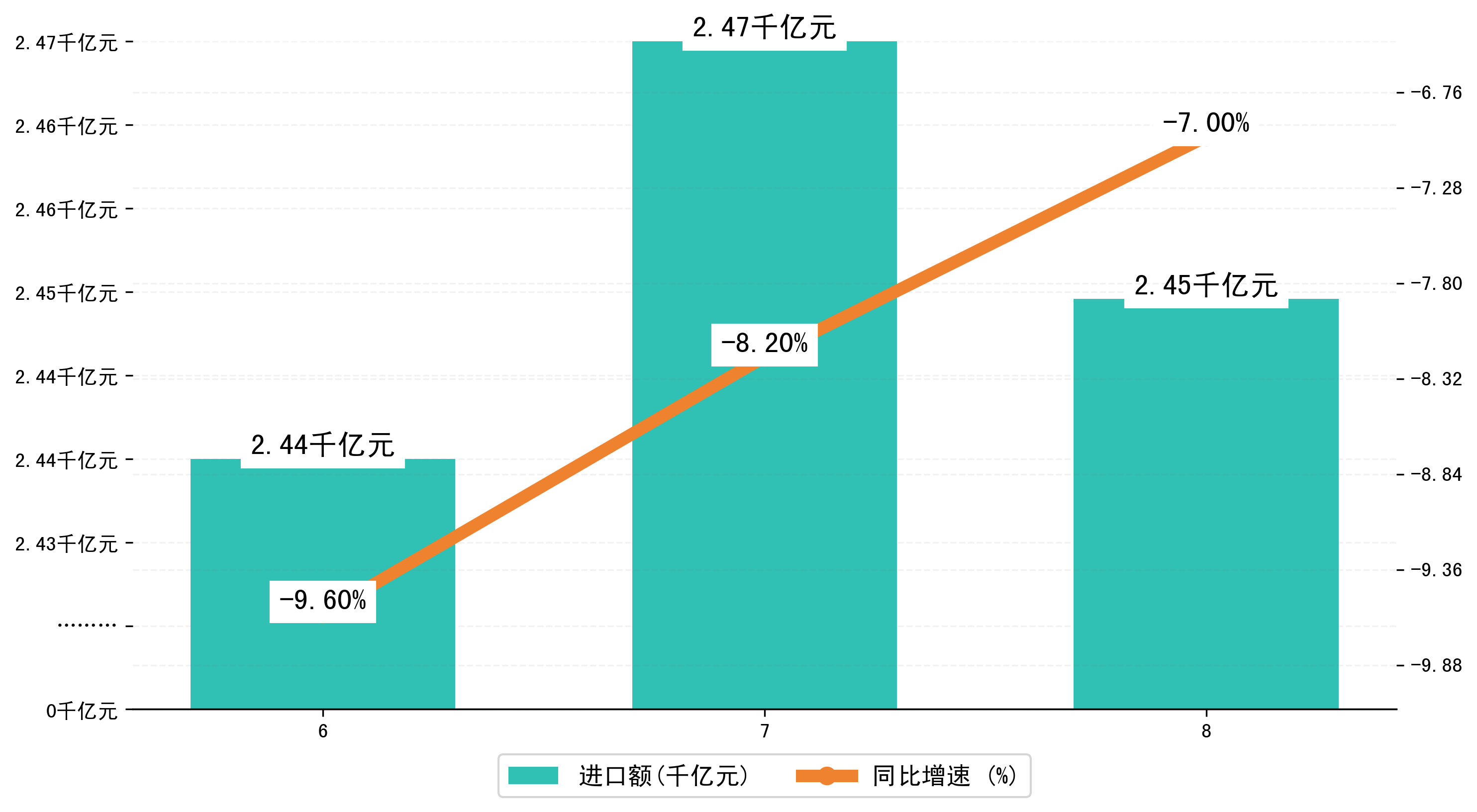以人民币计,2023年8月广东省进口额为2450,2725.7118万元,相比上月减少了19,9425.2499万元;相比上年同期增加了47,1117.8705万元,同比减少了-7.00%。