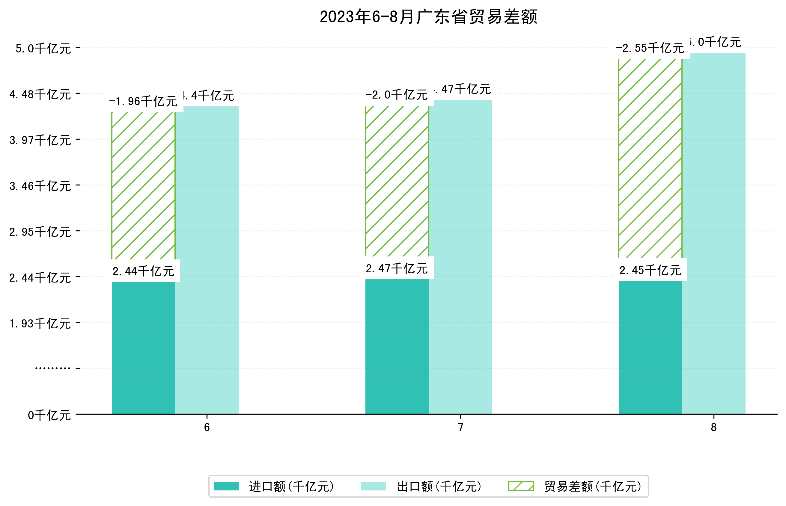 以美元计,2023年1-8月广东省贸易差额为2441,6010,6520万美元(贸易顺差),相比上年同期增加了276,1020,0354万美元,同比增加12.75%。