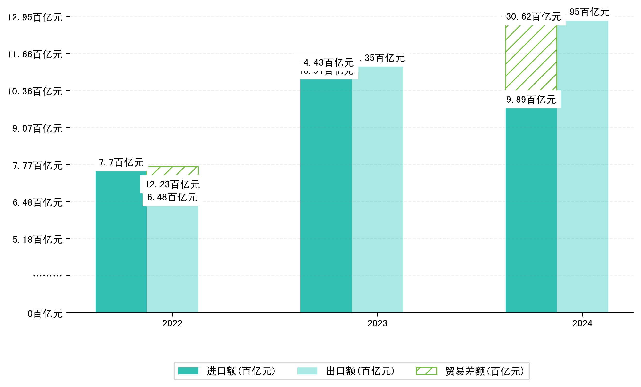 以人民币计,2024年1-4月广西壮族自治区贸易差额为306,2412,7814万元(贸易顺差),相比上年同期增加了261,9101,3626万元,同比增加590.8%。