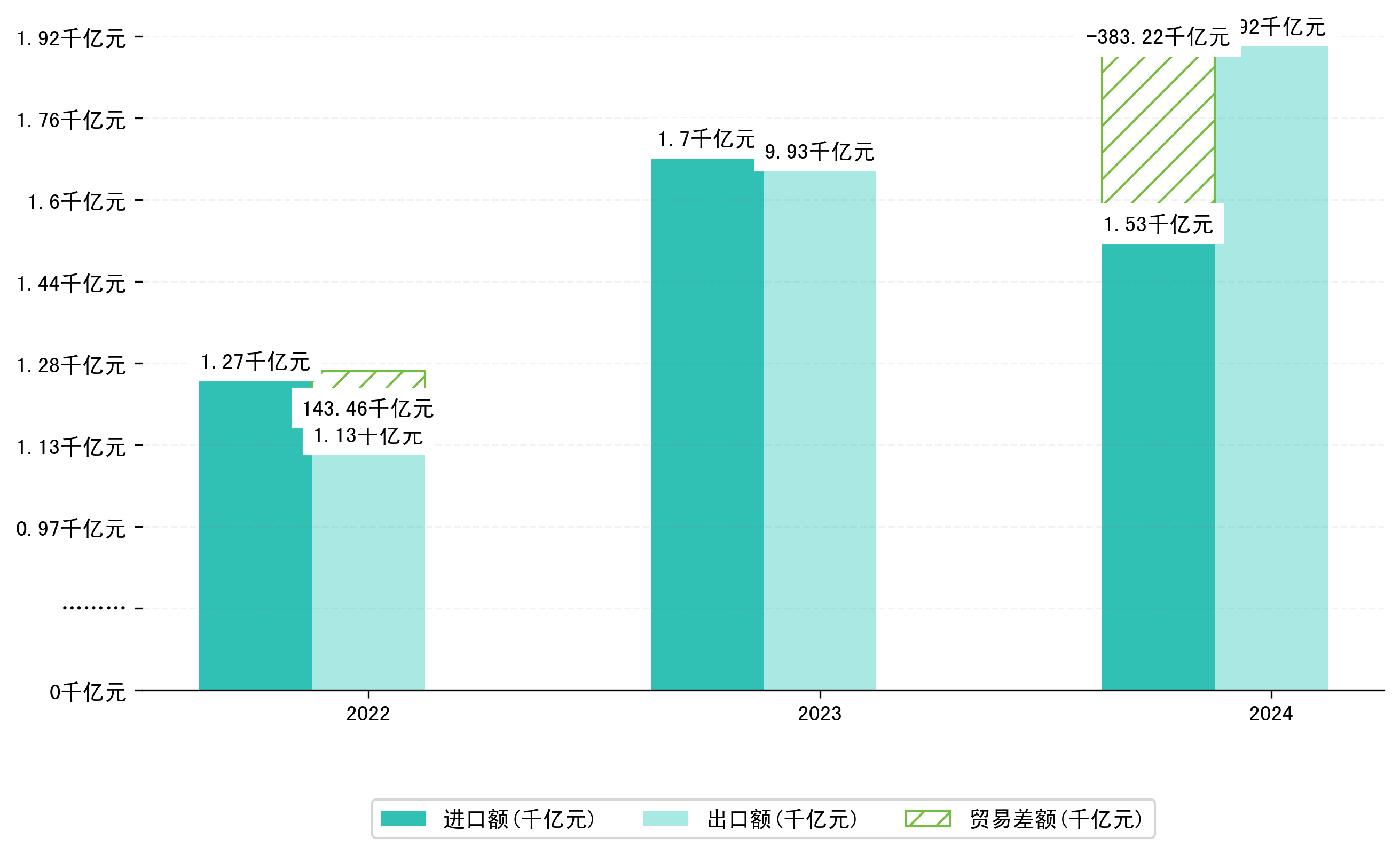 以人民币计,2024年1-6月广西壮族自治区贸易差额为383,2205,2281万元(贸易顺差),相比上年同期增加了393,1512,7063万元,同比增加-3958.93%。