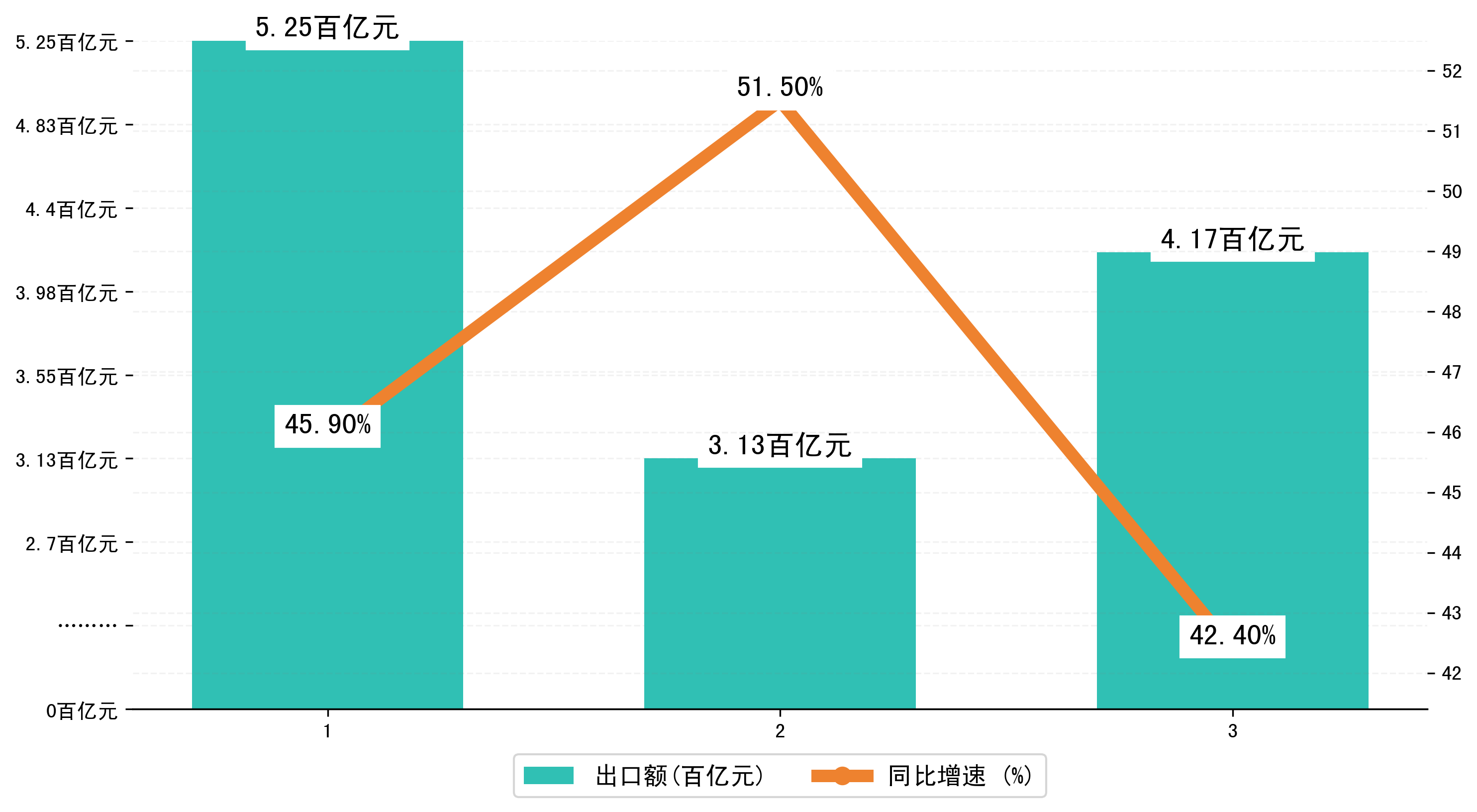 以人民币计,2025年3月广西壮族自治区出口额为417,4308.5292万元,相比上月增加了104,6340.9952万元;相比上年同期增加了79,0770.7982万元,同比增加了42.40%。