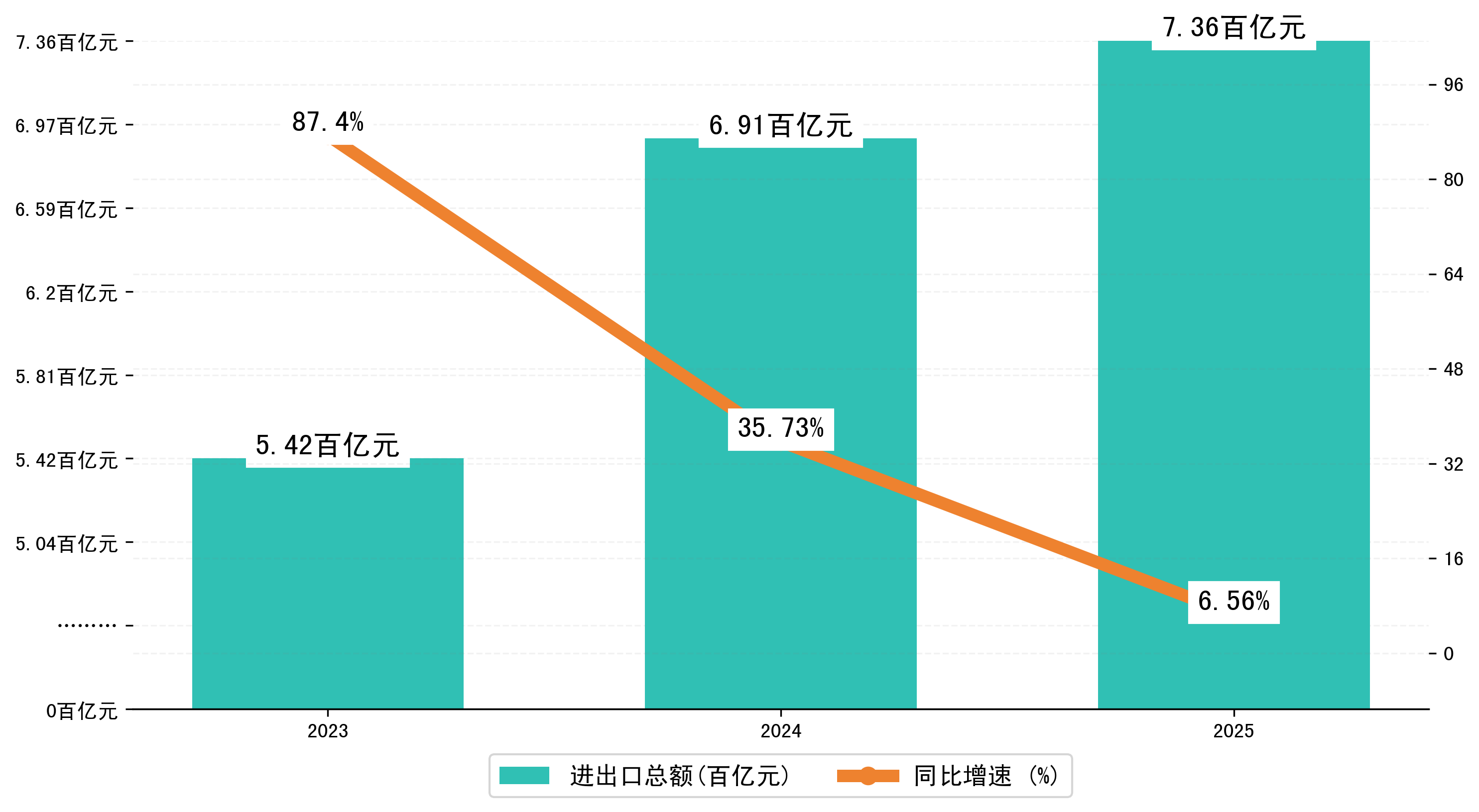 以人民币计,2025年1月广西壮族自治区进出口总额为736,1935.2517万元,相比上月减少了184,2081.4909万元;相比上年同期增加了45,3311.8477万元,同比增加了14.50%。