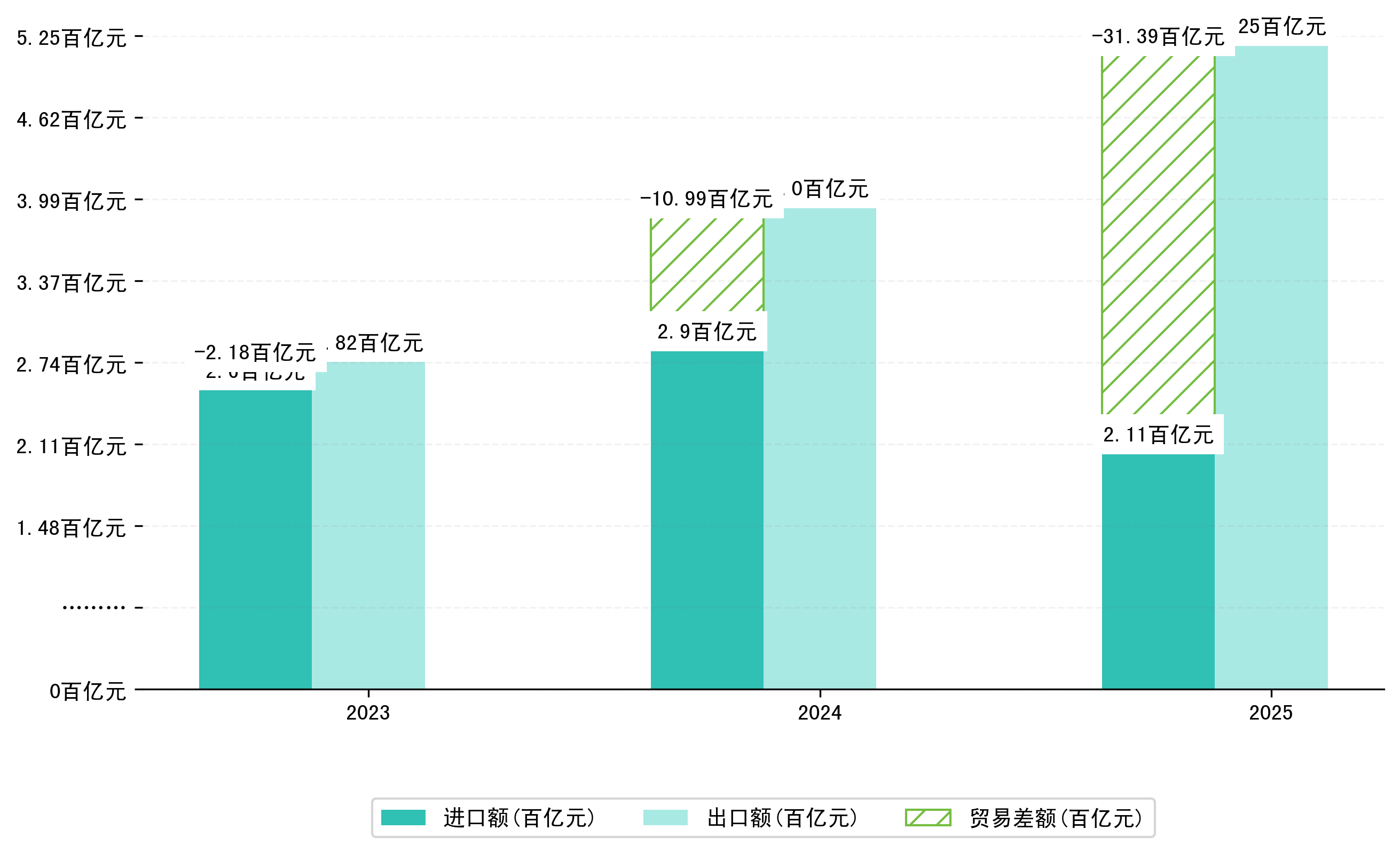 以人民币计,2025年1-1月广西壮族自治区贸易差额为313,9033,8089万元(贸易顺差),相比上年同期增加了203,9987,7444万元,同比增加185.61%。