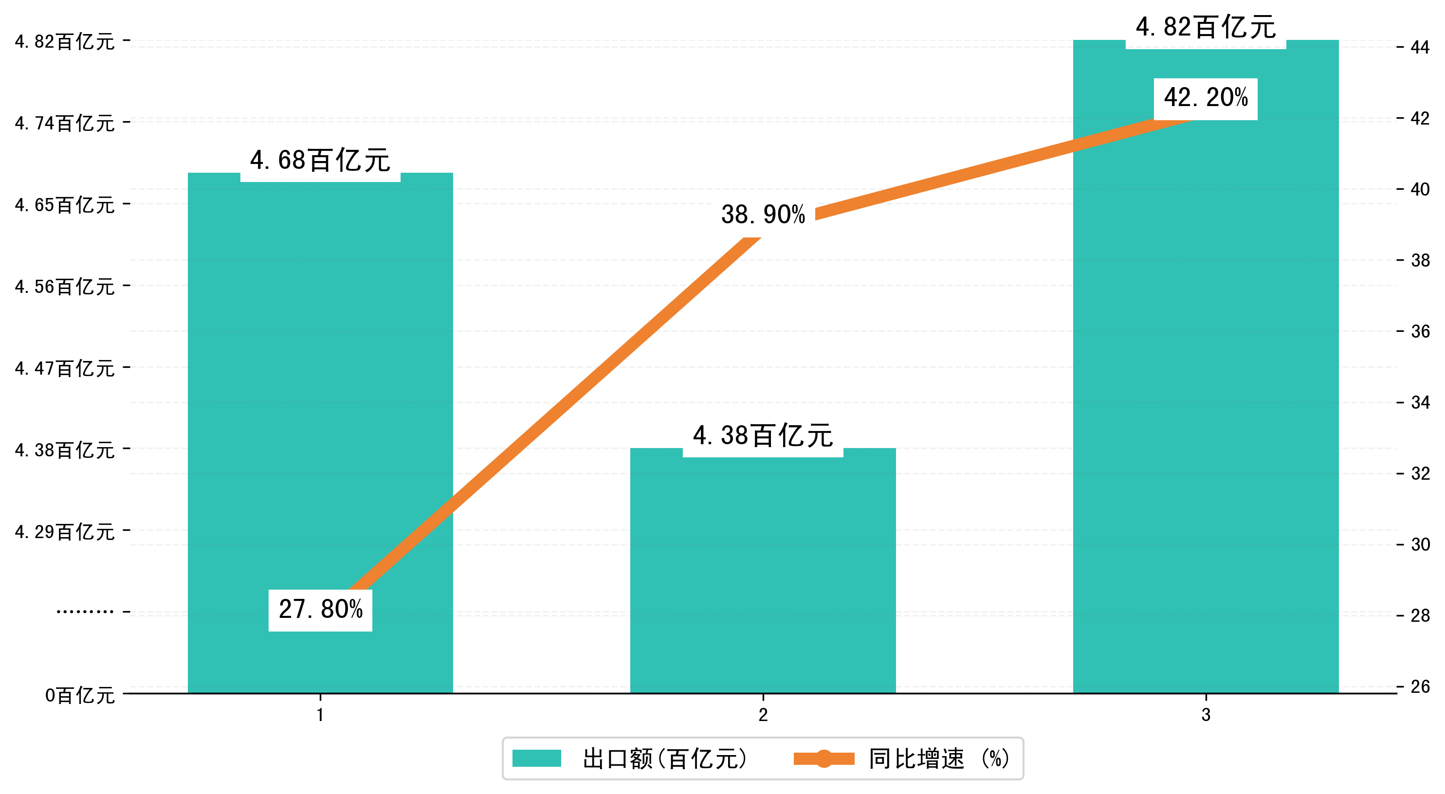 以美元计,2025年1-3月河南省出口额为193,3557.1804万美元,相比上年同期增加了56,0497.1959万美元,同比增加40.70%。