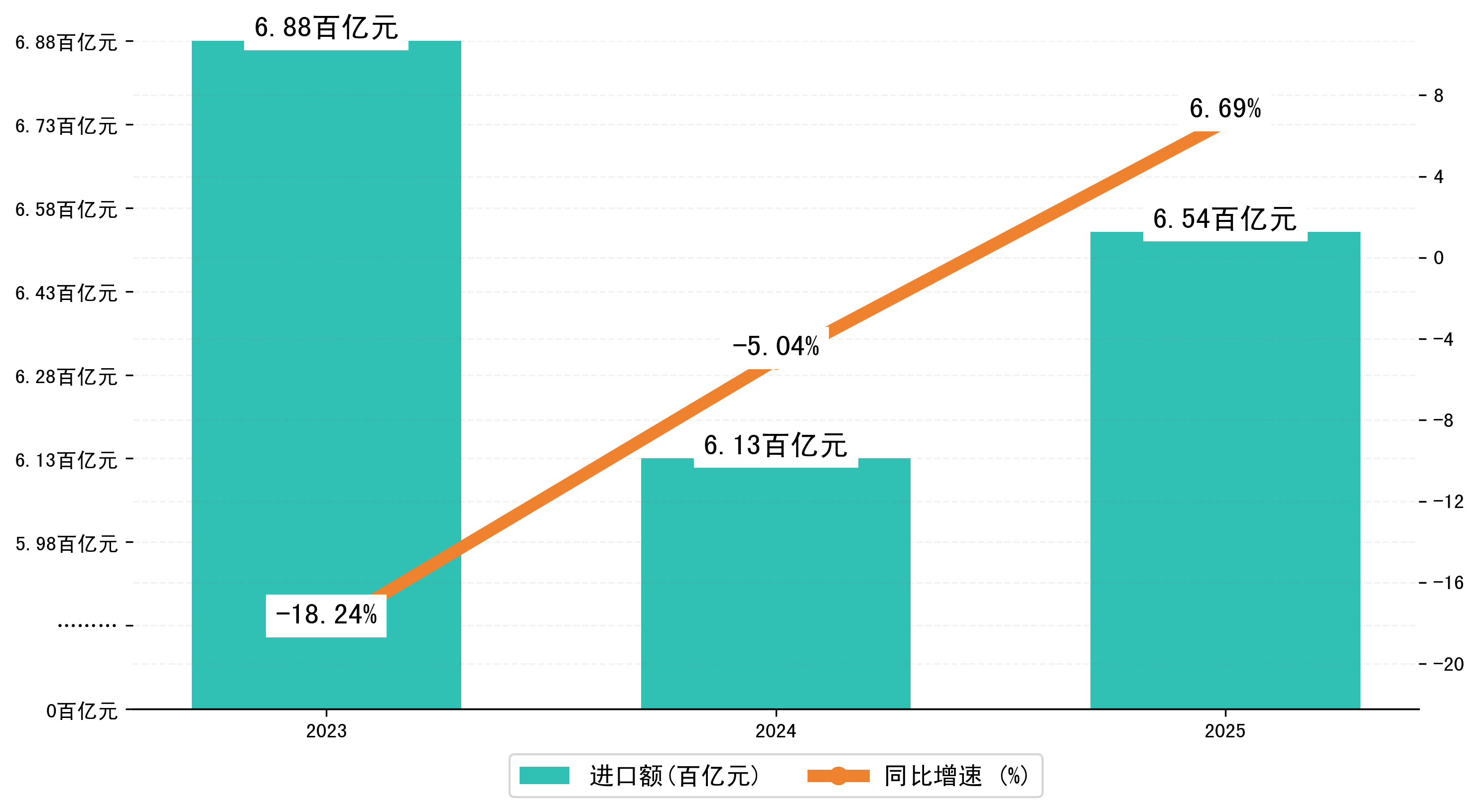 以人民币计,2025年1-3月河南省进口额为653,6812.2216万元,相比上年同期增加了40,9970.7055万元,同比增加了5.50%。