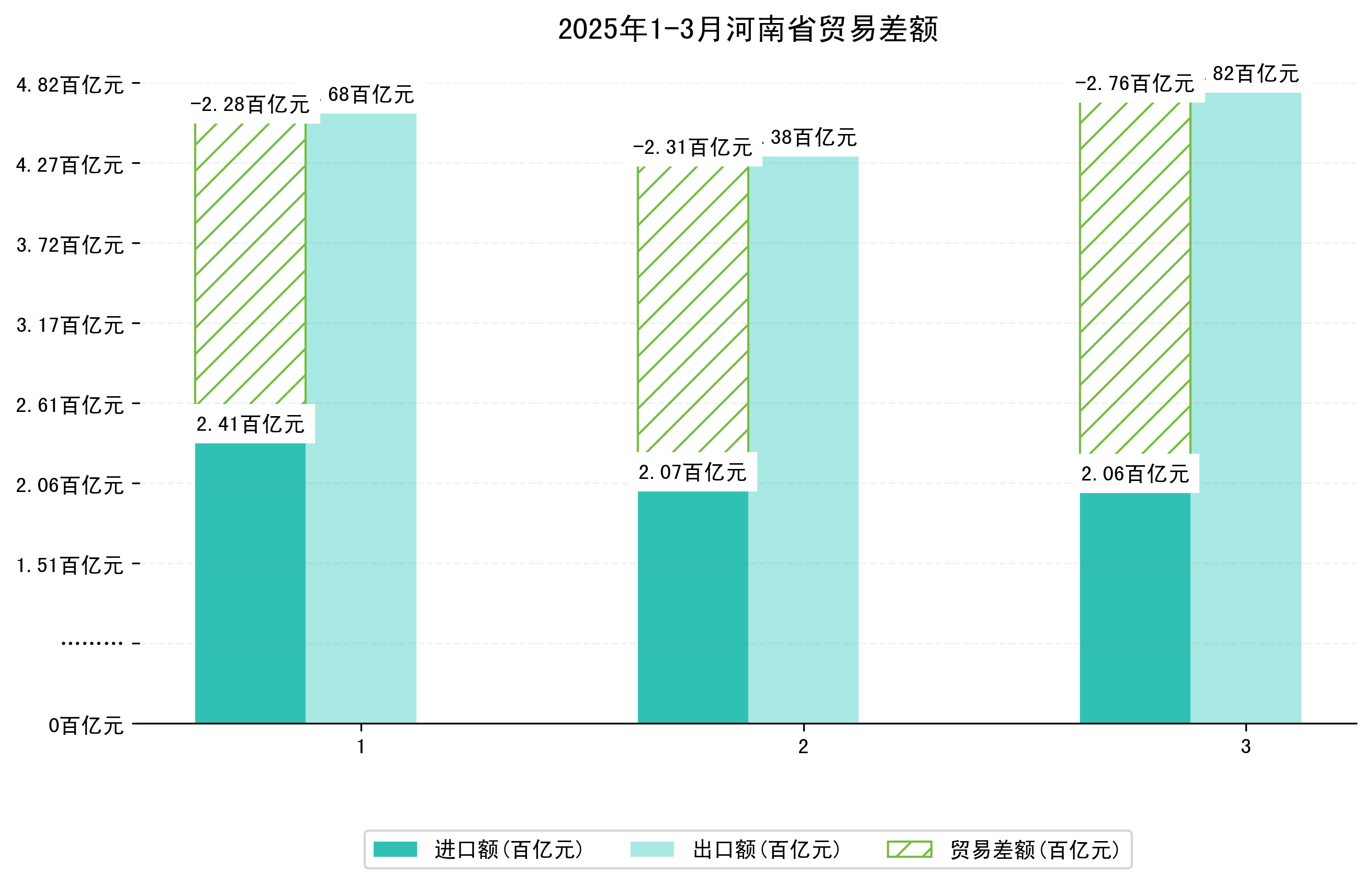 一、2025年3月河南省单月出口总额及进出口差额统计分析