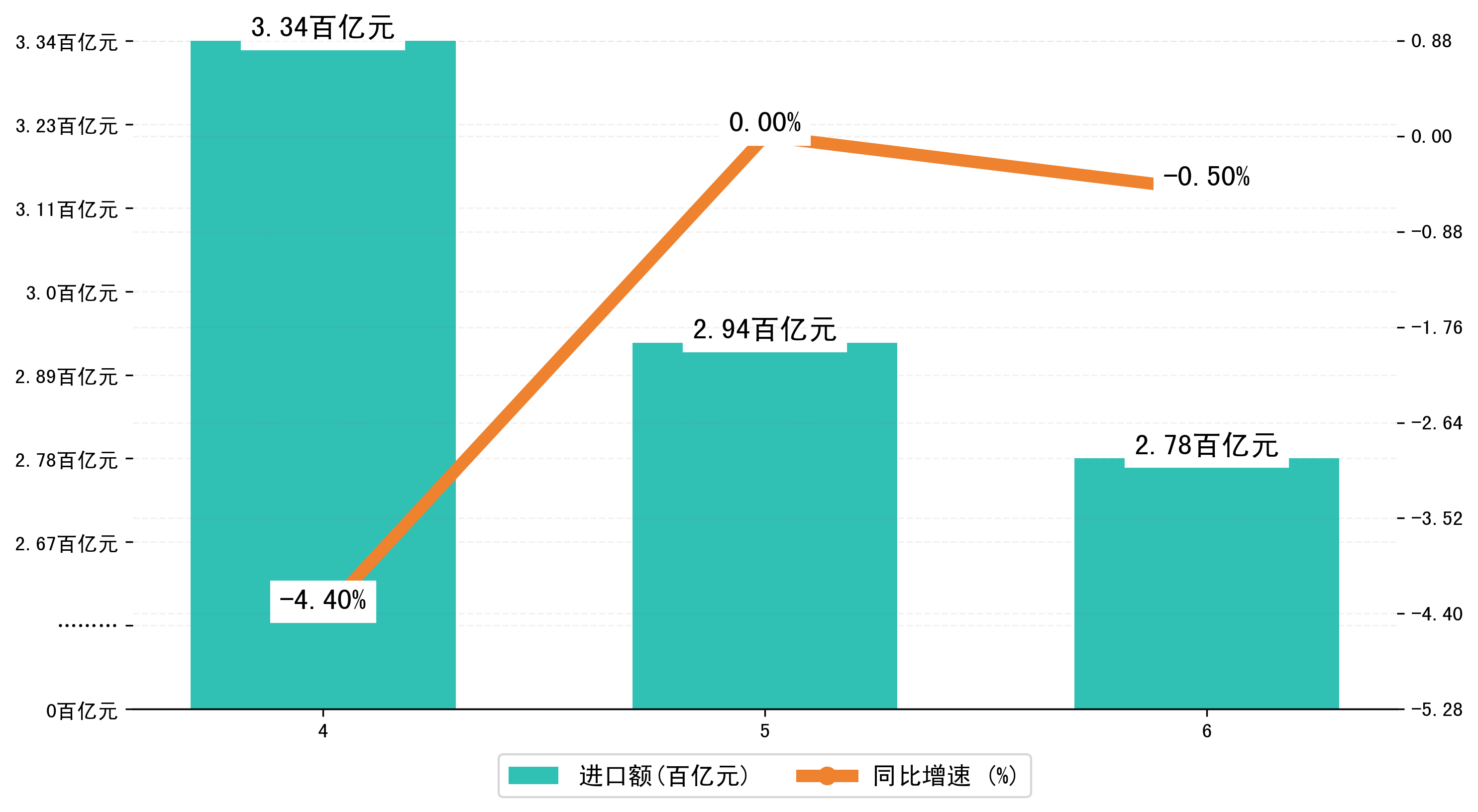 以人民币计,2025年6月广西壮族自治区进口额为278,3241.7309万元,相比上月减少了15,3063.5758万元;相比上年同期减少了16,6346.8203万元,同比减少了-0.50%。