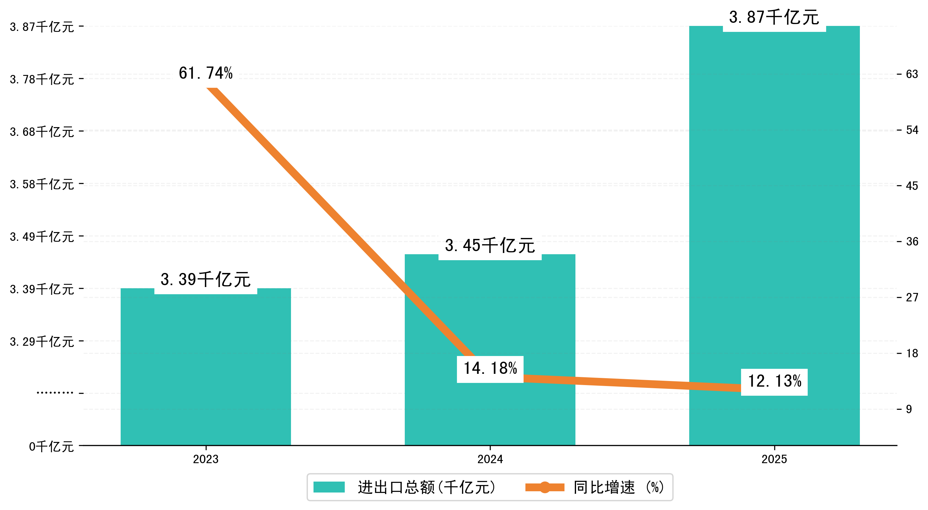 以人民币计,2025年1-6月广西壮族自治区进出口总额为3871,5018.2584万元,相比上年同期增加了418,7195.0441万元,同比增加了13.00%。